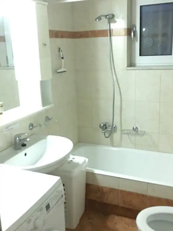 Il y a une machine à laver et un sèche-linge dans la salle de bain.