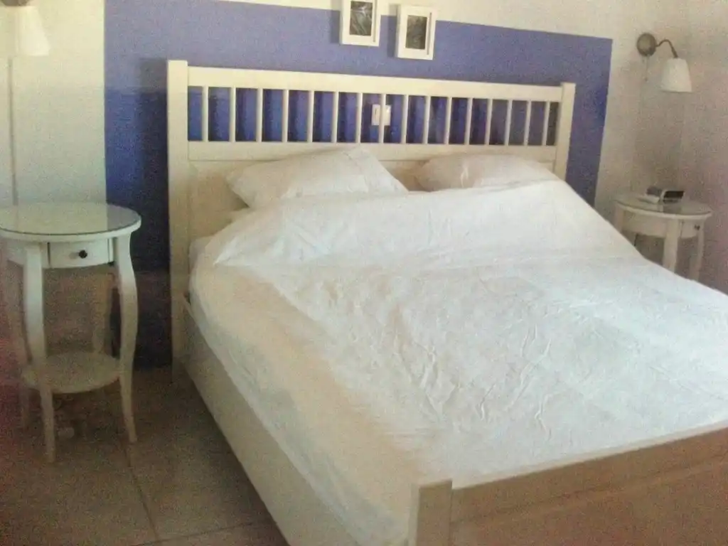 La maison dispose de 2 chambres, une avec 1 lit double et une avec 2 lits simples.