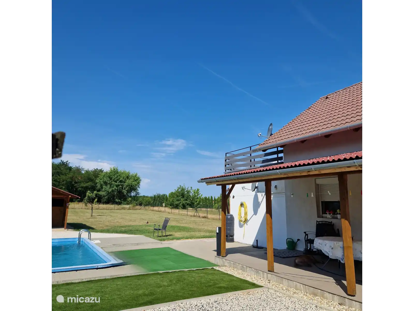 Frais d’utilisation : l’électricité et l’eau sont incluses. Un barbecue fixe est disponible dans le jardin à côté de la piscine, tous deux gratuits.