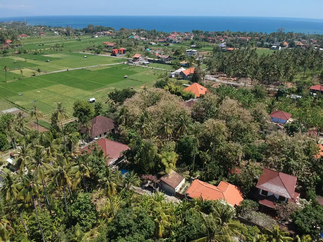 La Villa Kelapa dispose de trois chambres avec salles de bains, deux chambres ont un lit queen et la troisième a deux lits simples de 120 centimètres de large.
