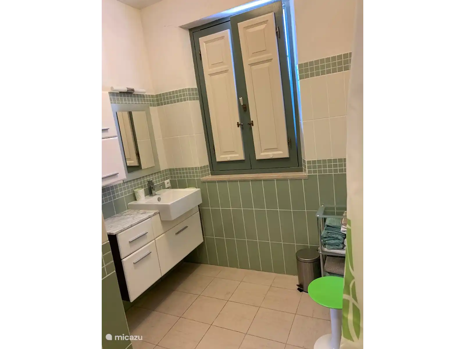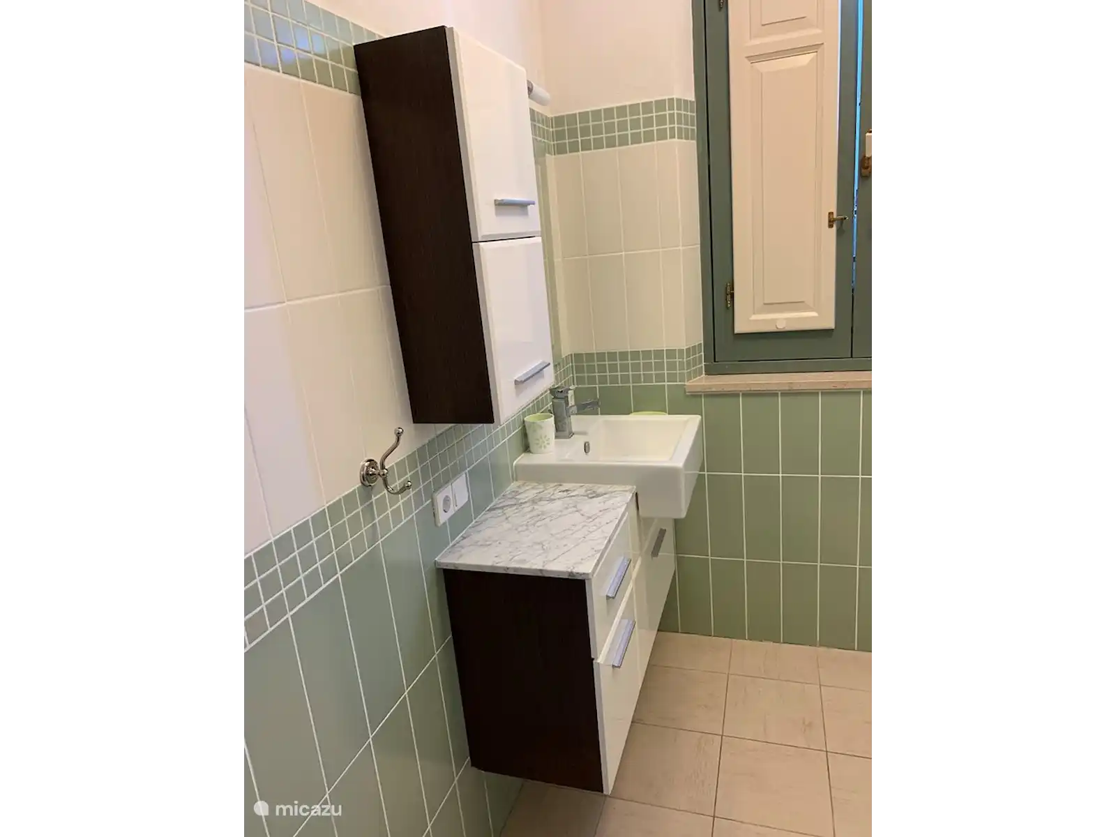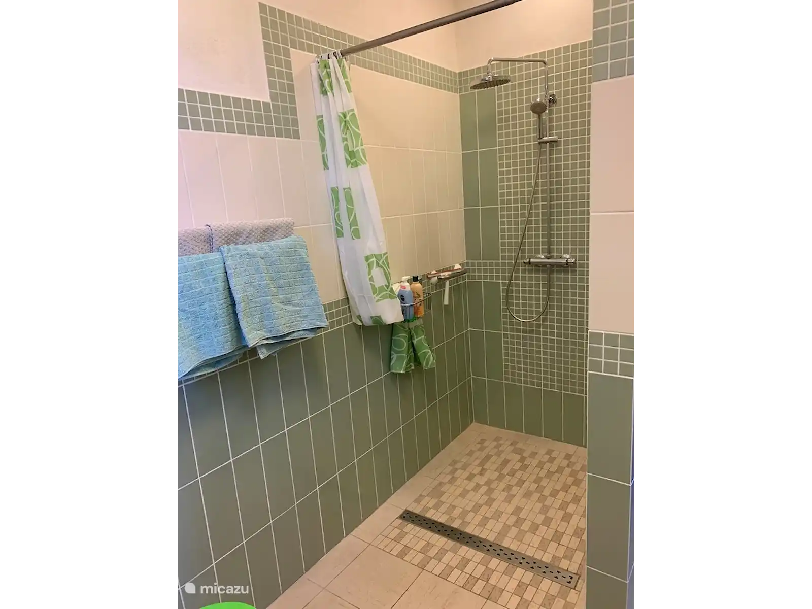 Il y a aussi une salle de bain très spacieuse avec une douche à l'italienne et un lavabo, il y a aussi des toilettes séparées. Il y a aussi une machine à laver pour les clients.