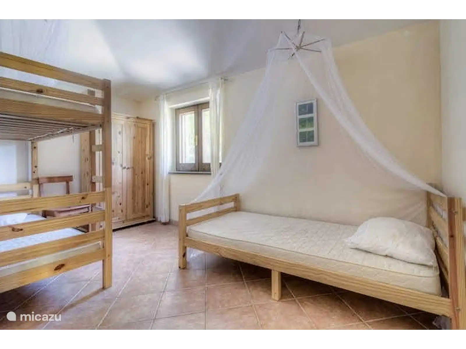 Campaniacasa Bianco, vous regardez sur le vieux champ avec le village en arrière-plan. Bianco se compose d'un grand séjour avec cuisine ouverte. Deux doubles portes avec moustiquaires coulissantes donnent accès à une grande terrasse extérieure avec une vue fantastique sur la région. Il y a un solarium sur la terrasse. Bianco dispose de deux chambres, une avec un lit double et une avec trois lits simples. La salle de bain a une toilette, un bidet, une douche et un lavabo.De plus, il y a un excellent canapé-lit double dans le salon.