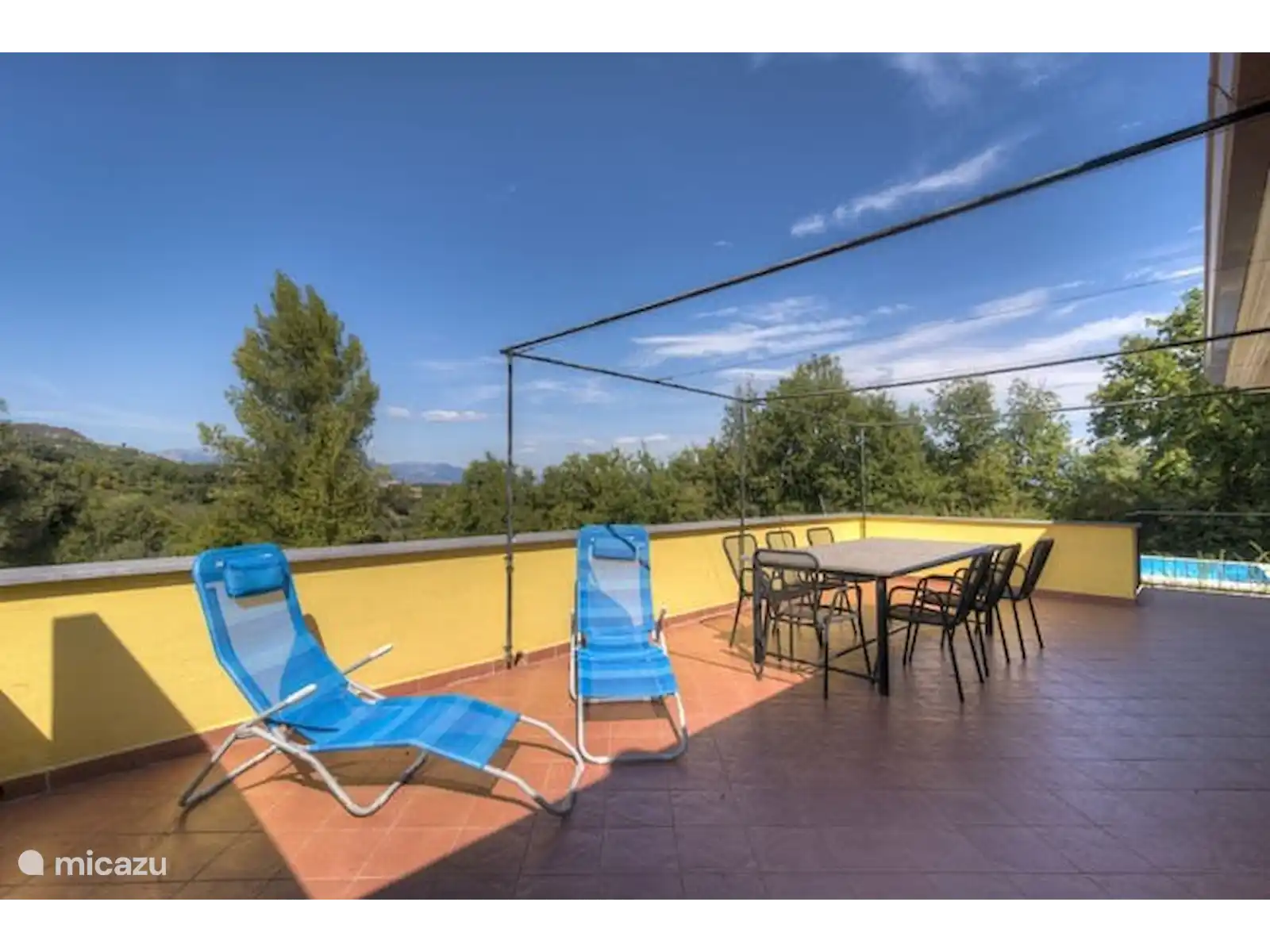Campaniacasa Blu surplombe la piscine. Blu se compose d'un grand séjour avec cuisine ouverte. Deux doubles portes avec moustiquaires coulissantes donnent accès à une grande terrasse extérieure avec une vue fantastique sur la région. Il y a un solarium sur la terrasse. Blu dispose de deux chambres, une avec un lit double et une avec trois lits simples. La salle de bain a une toilette, un bidet, une douche et un lavabo.De plus, il y a un excellent canapé-lit double dans le salon.