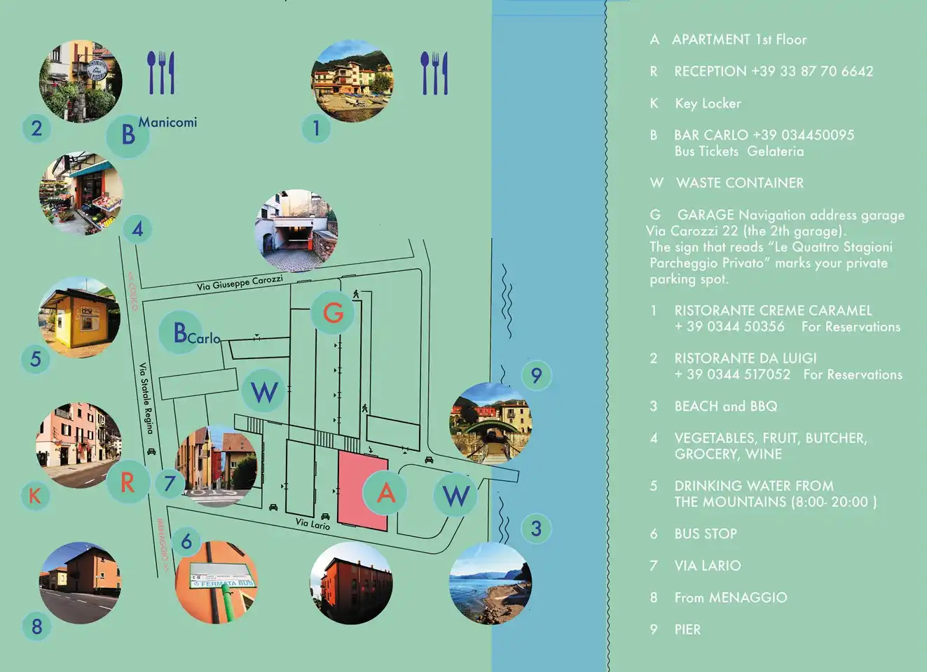 Menaggio est à 3 km où se trouvent un mini-golf, un terrain de golf, un supermarché et le Ferry. Cela vous emmènera dans de nombreux endroits magnifiques autour du lac, ainsi que le ferry rapide. Comme Bellagio, Côme, Varenna. La gare la plus proche est Varenna ( 8 km )