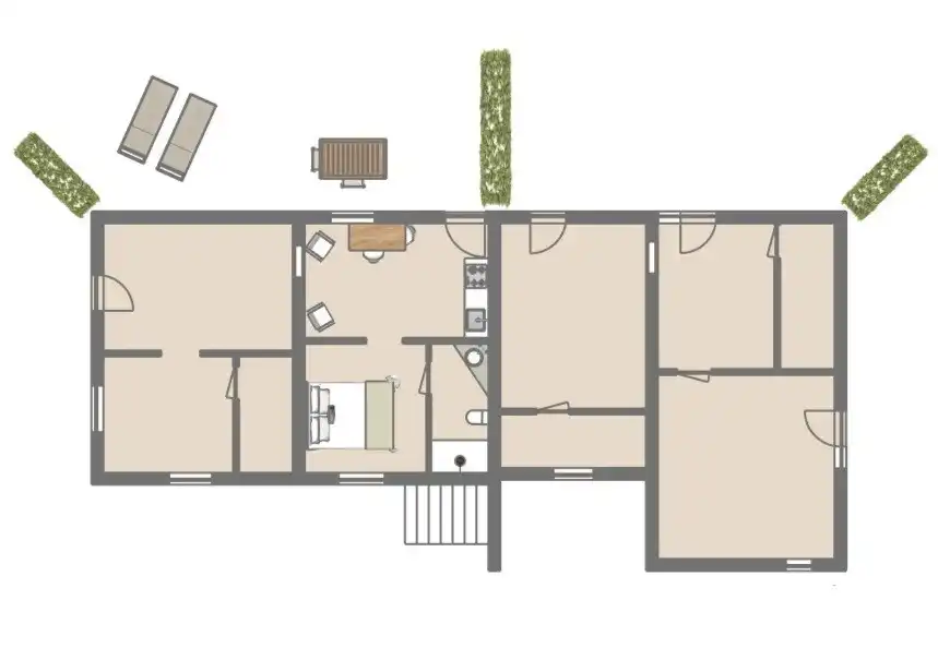 Il y a un total de quatre appartements, tous avec terrasses privées, avec mobilier de jardin et chaises longues. Il y a aussi une piscine commune avec des transats où vous avez du soleil toute la journée.