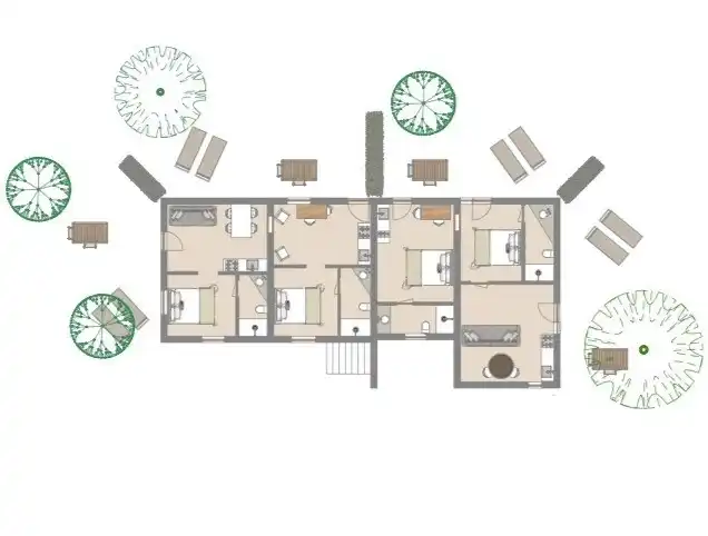 Il y a un total de quatre appartements, tous avec terrasses privées, avec mobilier de jardin et chaises longues. Il y a aussi une piscine commune avec des transats où vous avez du soleil toute la journée.
