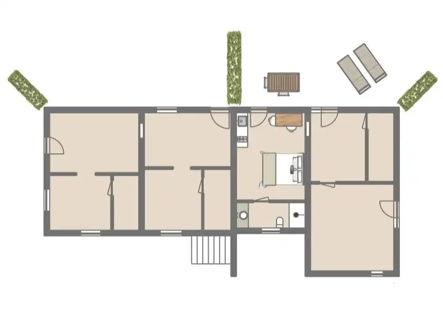Il y a aussi une piscine commune avec des transats où vous avez du soleil toute la journée.