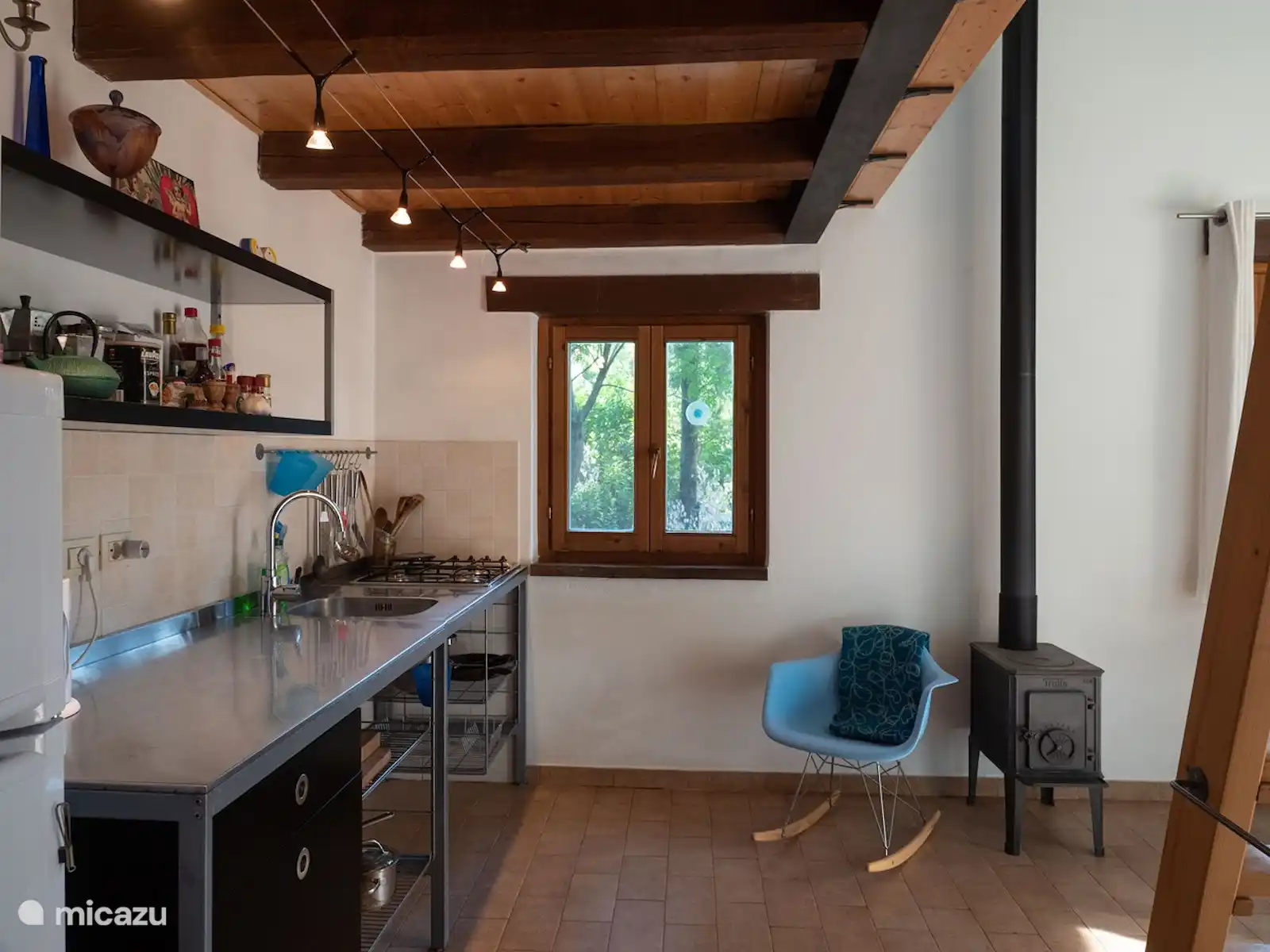 Il y a un poêle à bois à côté du chauffage central. Dans la cuisine, il y a beaucoup de vaisselle et de couverts, des couteaux bien coupants, un moulin à poivre en état de marche, un presse-ail, etc. Nous avons essayé d’éviter tous les ennuis liés aux maisons que nous avons jamais louées nous-mêmes. Vous pouvez laisser en toute sécurité votre boîte avec des poêles à frire, des couteaux, etc. à la maison et y réaliser vos délices culinaires.