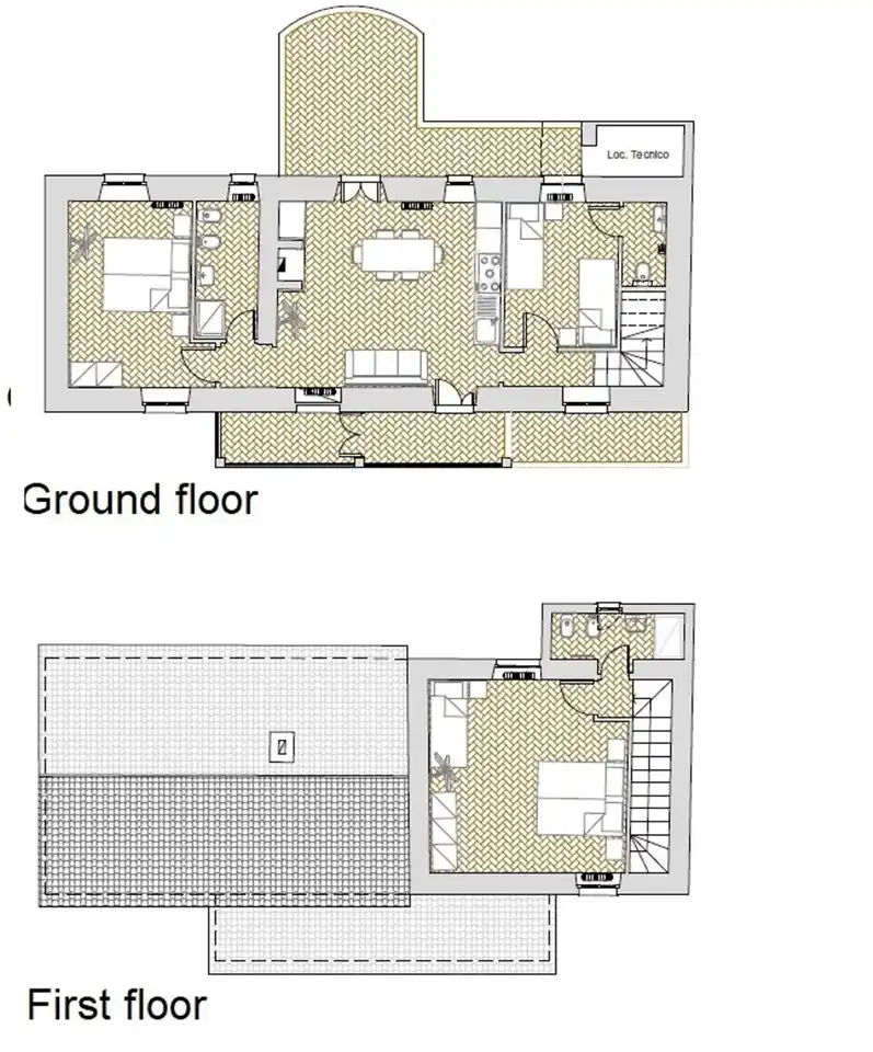 M² : 120 Rez-de-chaussée : séjour/salle à manger avec cuisine, chambre avec lit double, salle de bain (douche/wc), chambre avec deux lits simples et wc privatif. A l'étage : chambre avec lit double, lit bébé. Salle de bain avec douche et toilette.