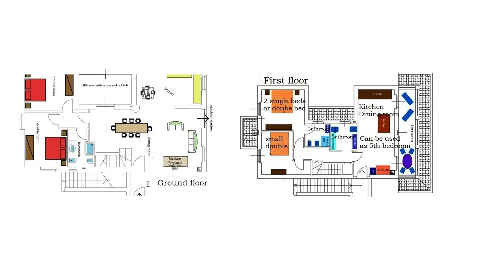 Le 1er étage dispose d'une 5ème pièce avec cuisine et canapé-lit double pouvant également servir de cinquième chambre (il y a aussi la climatisation). Le rez-de-chaussée a une salle de bain au premier étage deux. Toutes les chambres et les salons sont climatisés. Connexion Internet Wi-Fi disponible sur les deux étages. Il y a 2 lits bébé disponibles et 1 chaise haute (pas de problème pour en obtenir un deuxième si demandé).