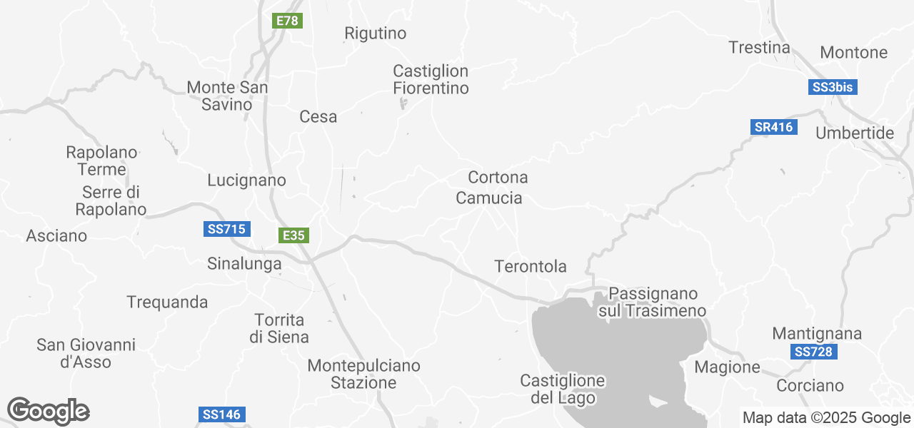 Camucia-Cortona 4 km, Terontola 9 km, Arezzo 32 km, Florence 110 km, Rome 200 km