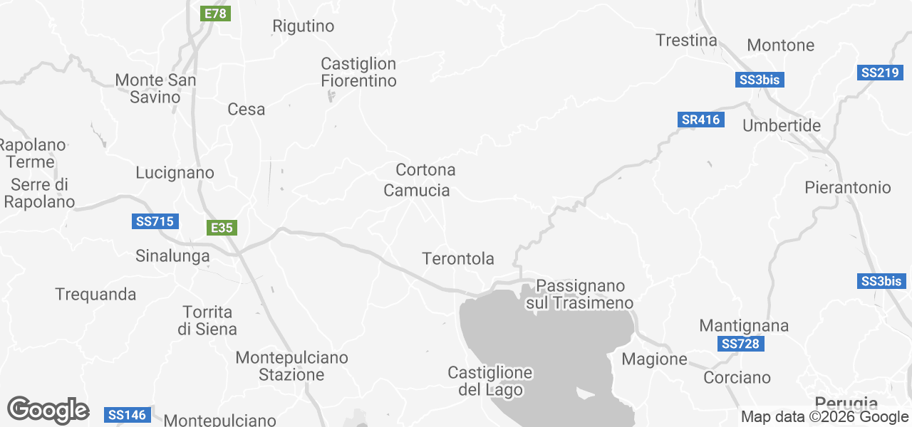 Camucie-Cortona 2 km, Terontola 5 km, Arezzo 32 km, Florence 110 km, Rome 200 km.