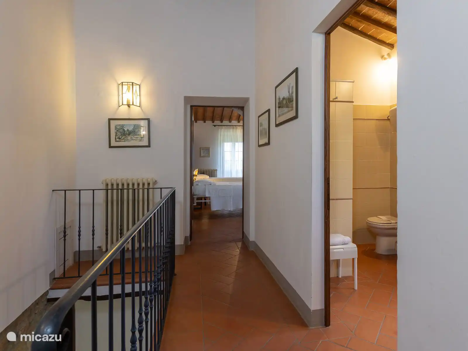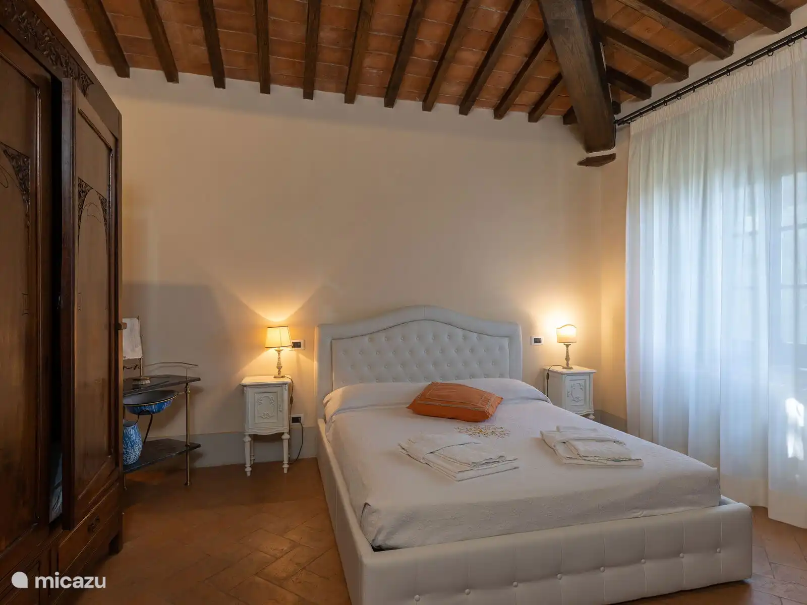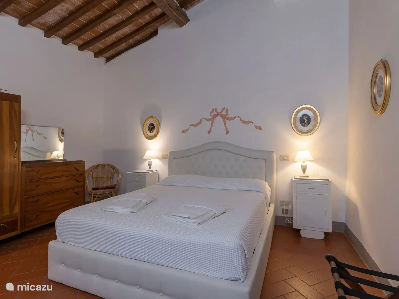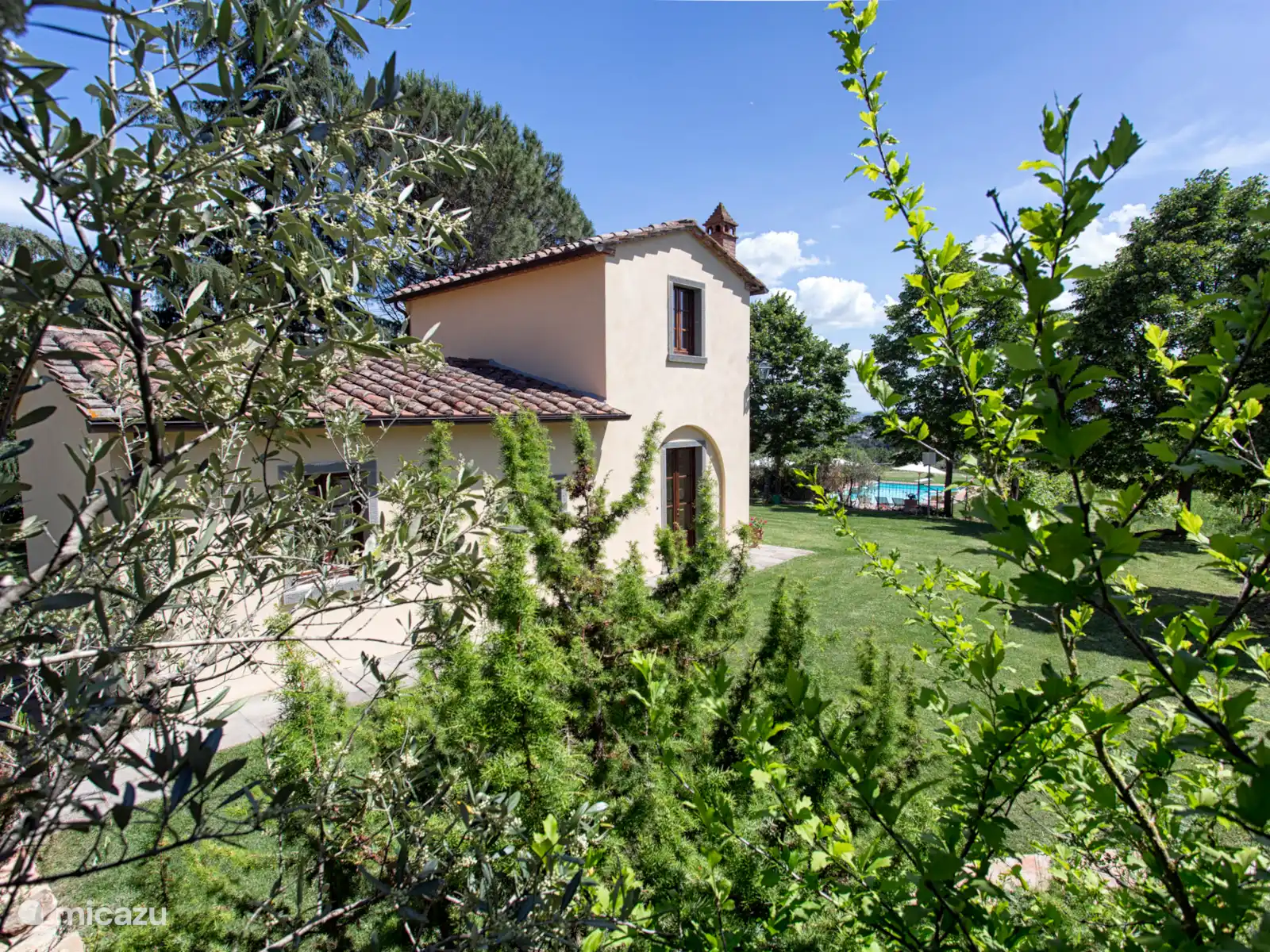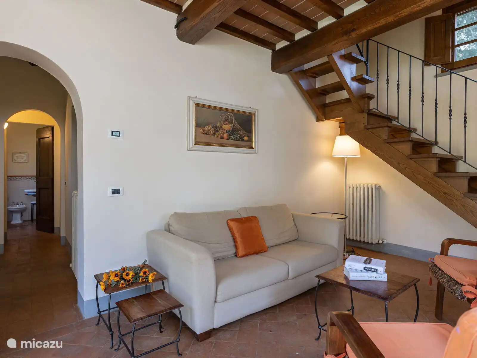 Devant la villa principale se trouve le cottage avec le troisième appartement, également meublé selon le goût typique toscan, avec une entrée privée et un jardin.