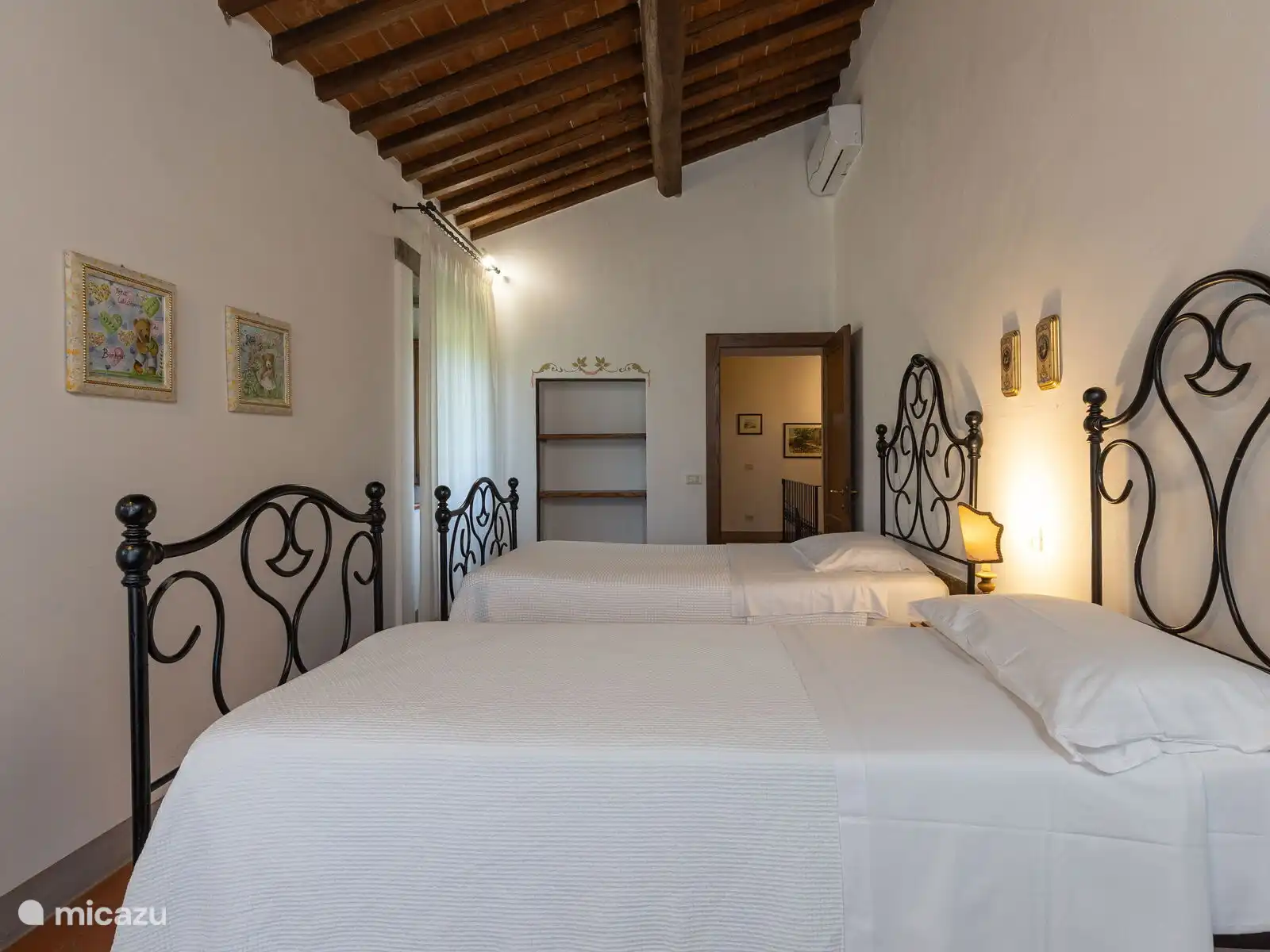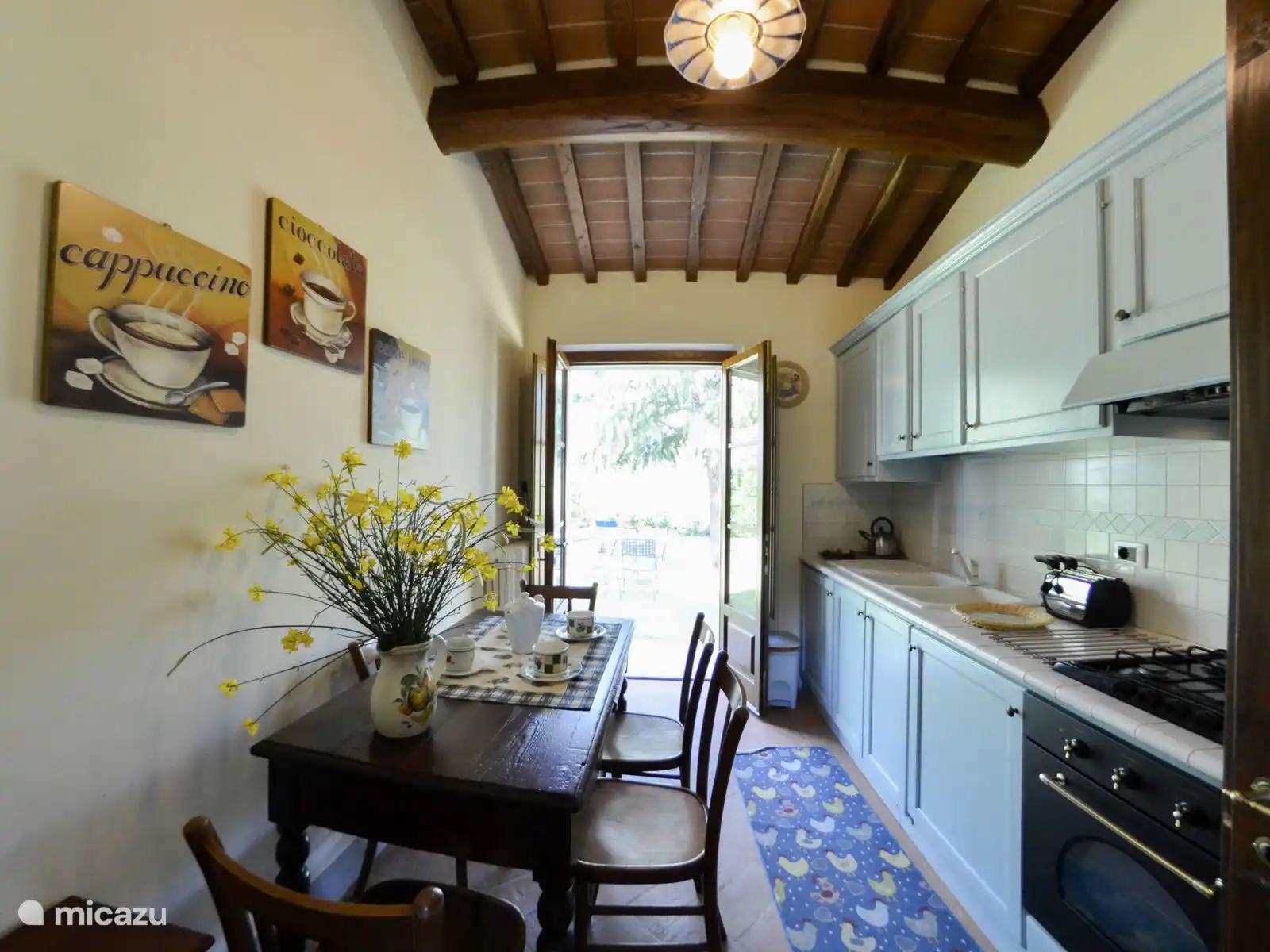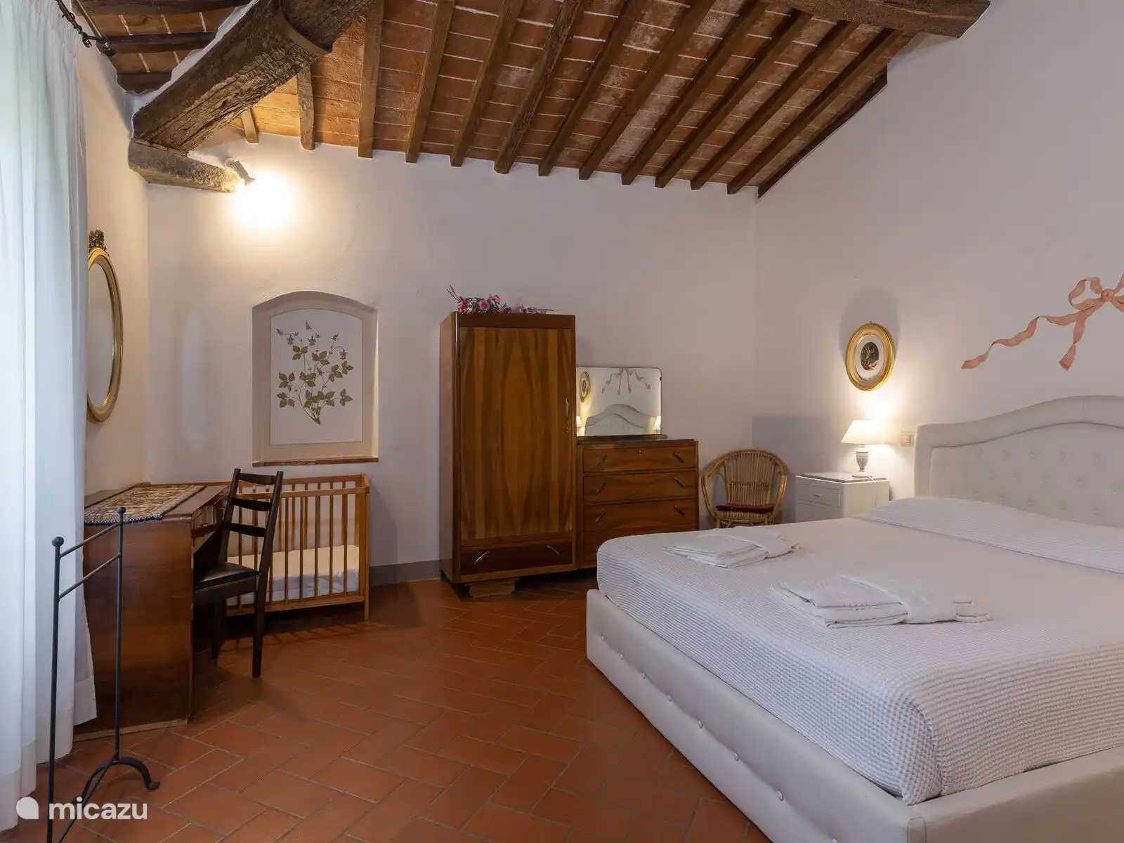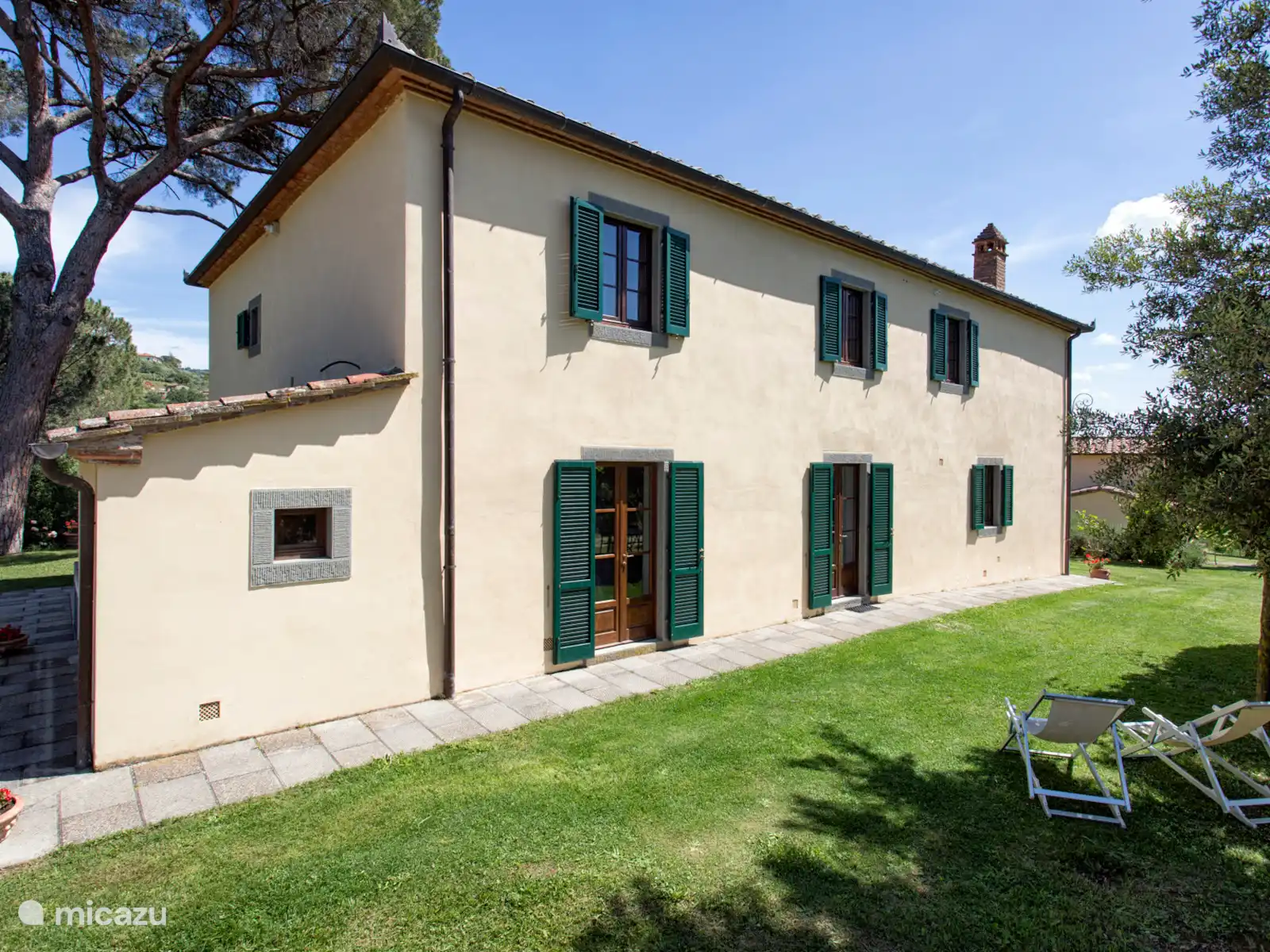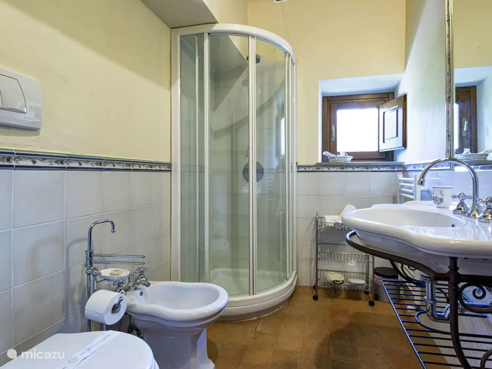 Devant la villa principale se trouve le cottage avec le troisième appartement, également meublé selon le goût typique toscan, avec une entrée privée et un jardin.