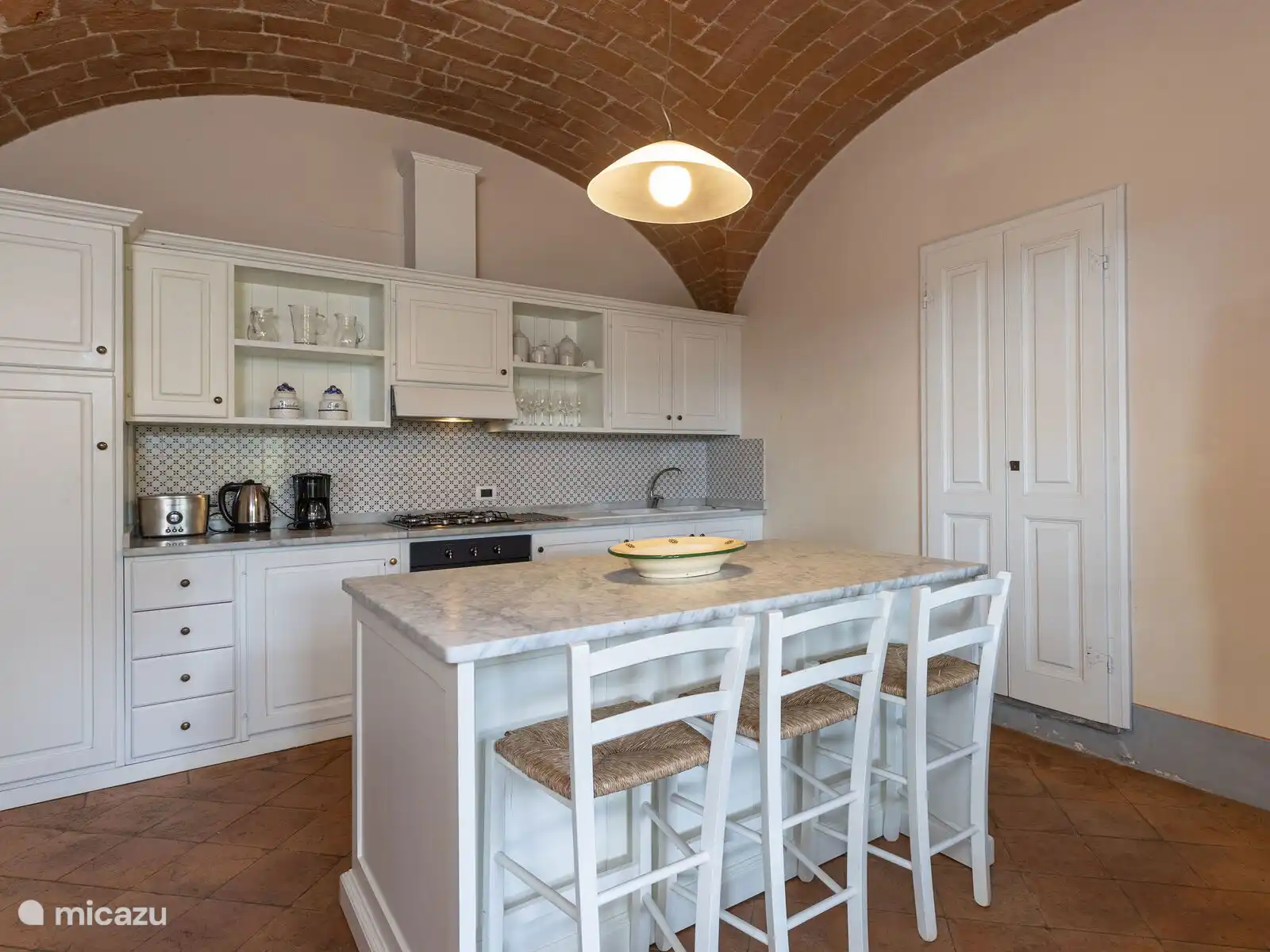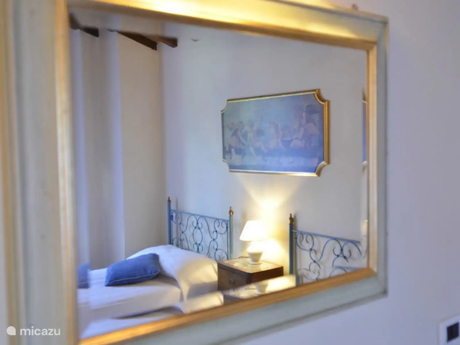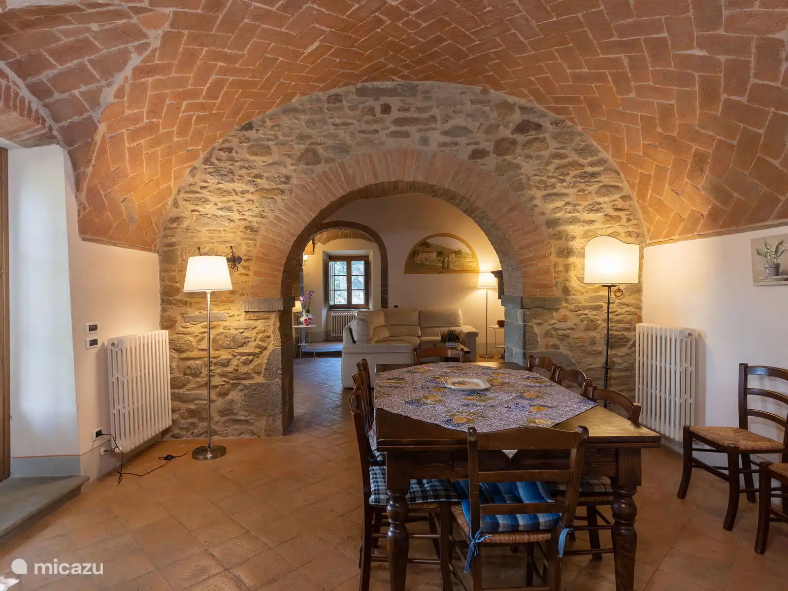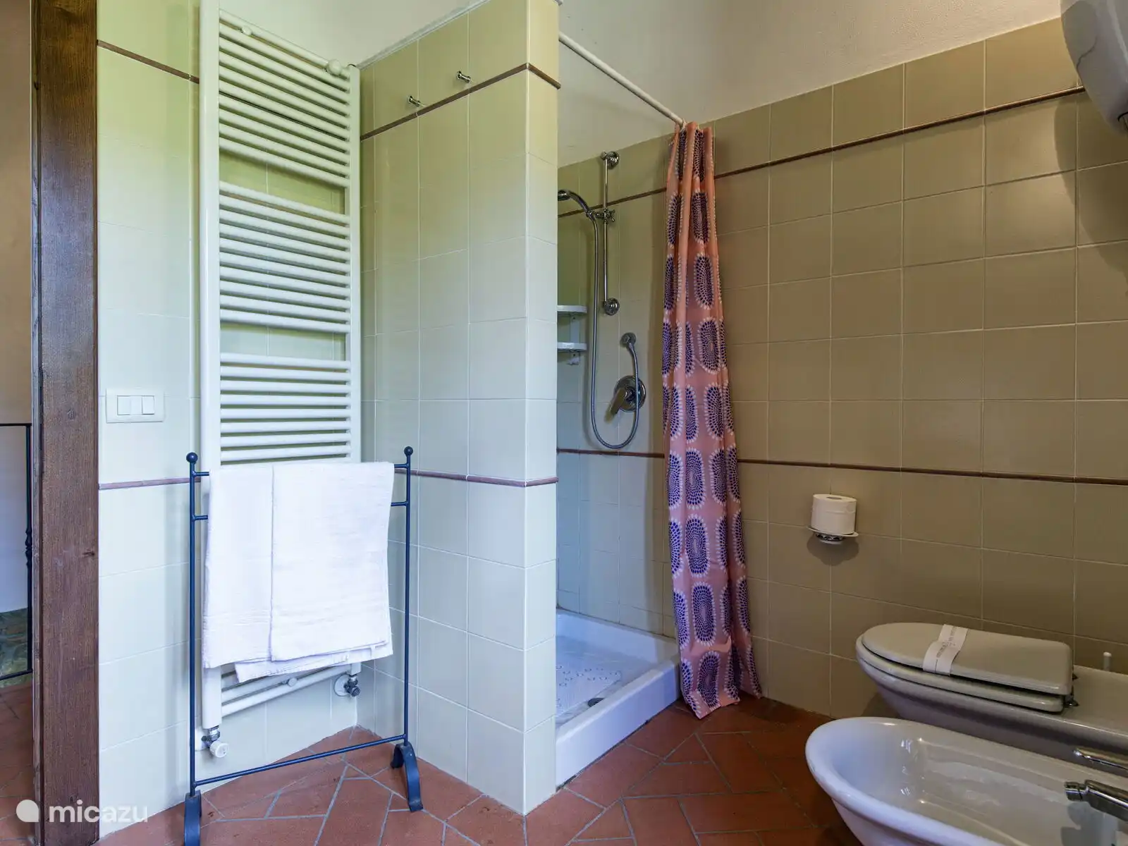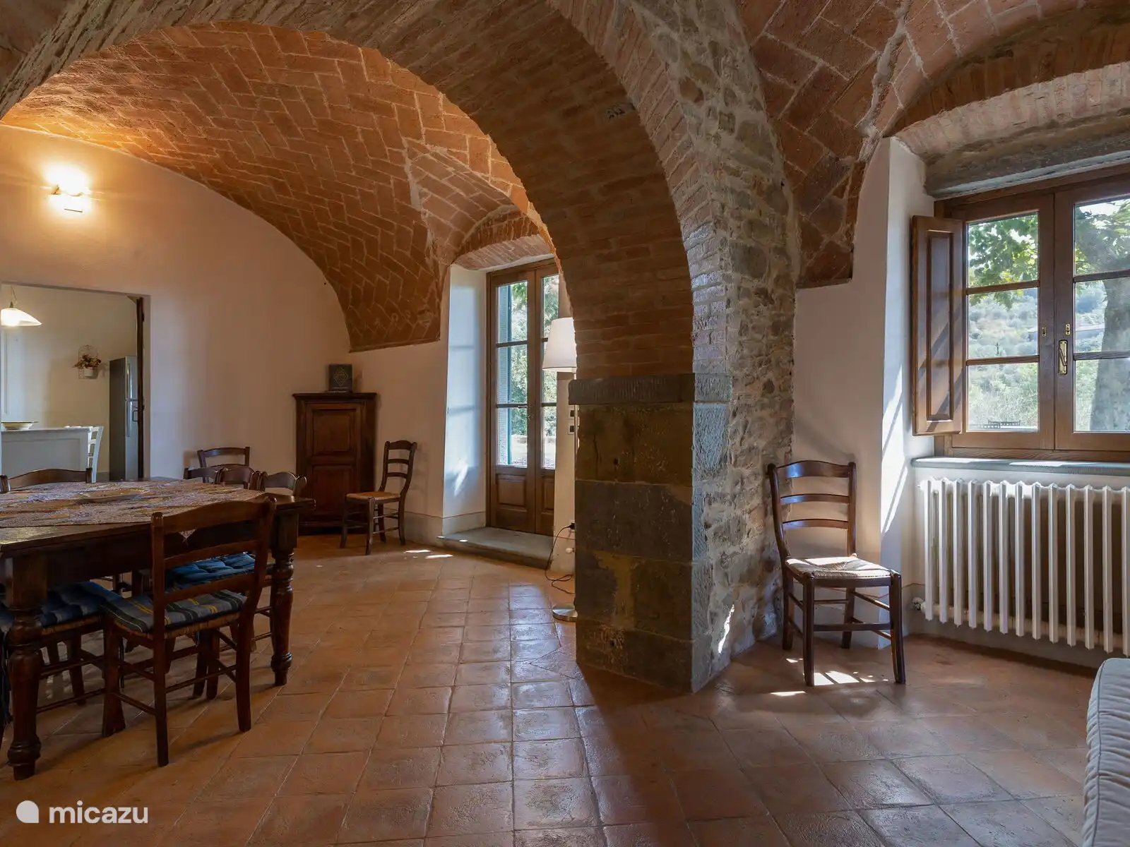 Devant la villa principale se trouve le cottage avec le troisième appartement, également meublé selon le goût typique toscan, avec une entrée privée et un jardin.