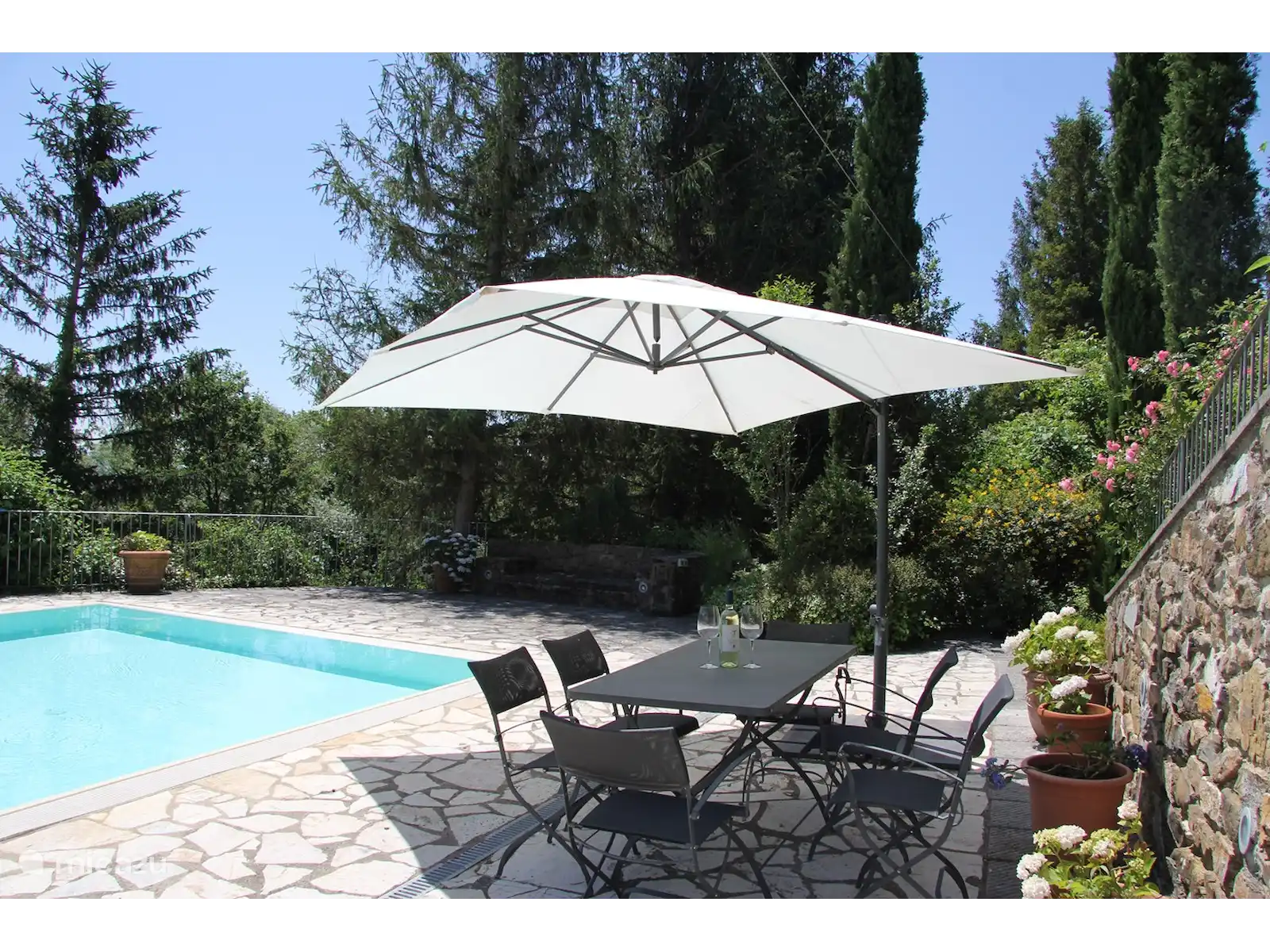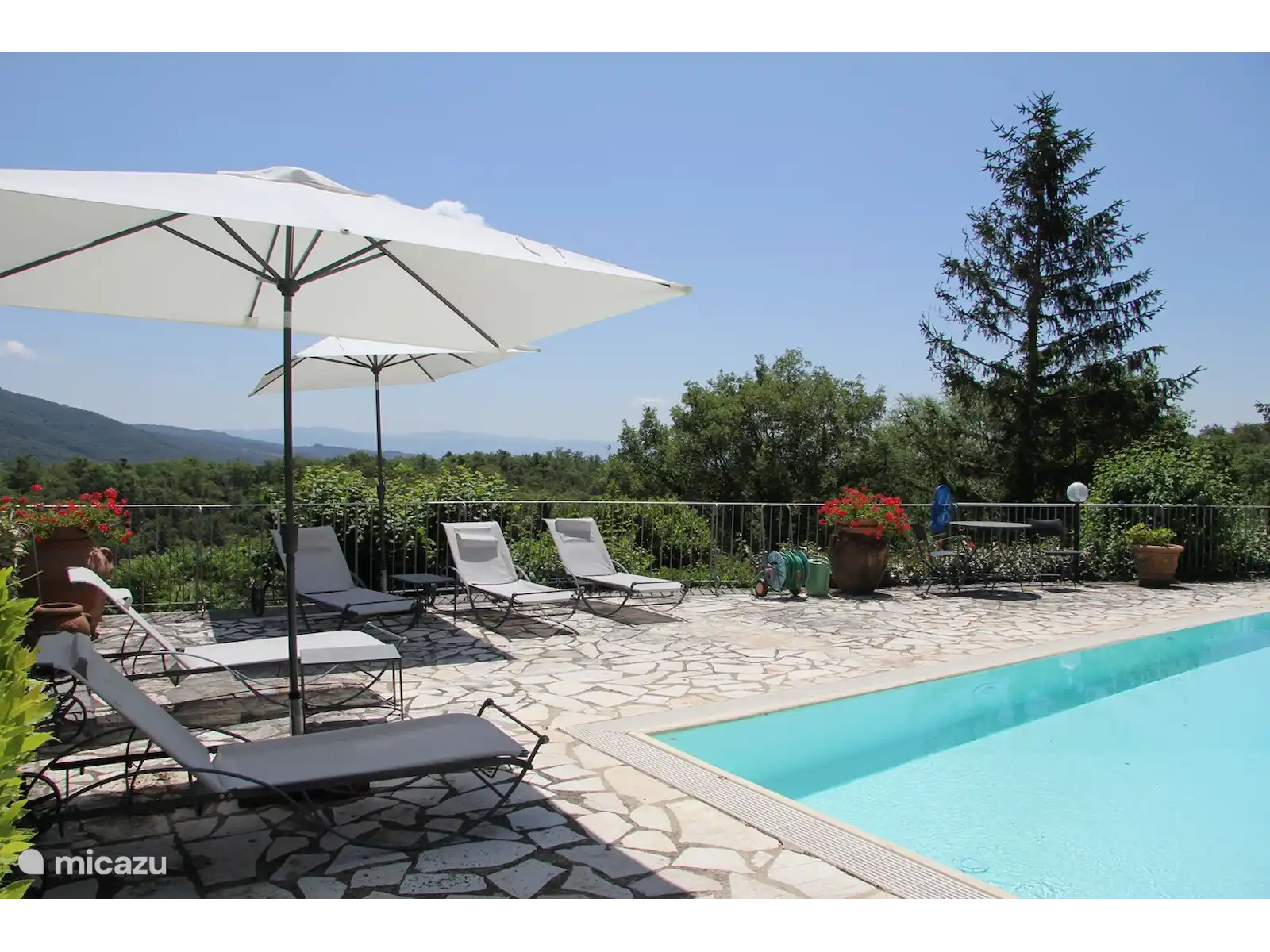 Il y a plusieurs terrasses pour profiter de la vue, de la tranquillité, d’un cappuccino maison, d’un déjeuner italien ou d’un bon verre de vin et de la nature environnante.