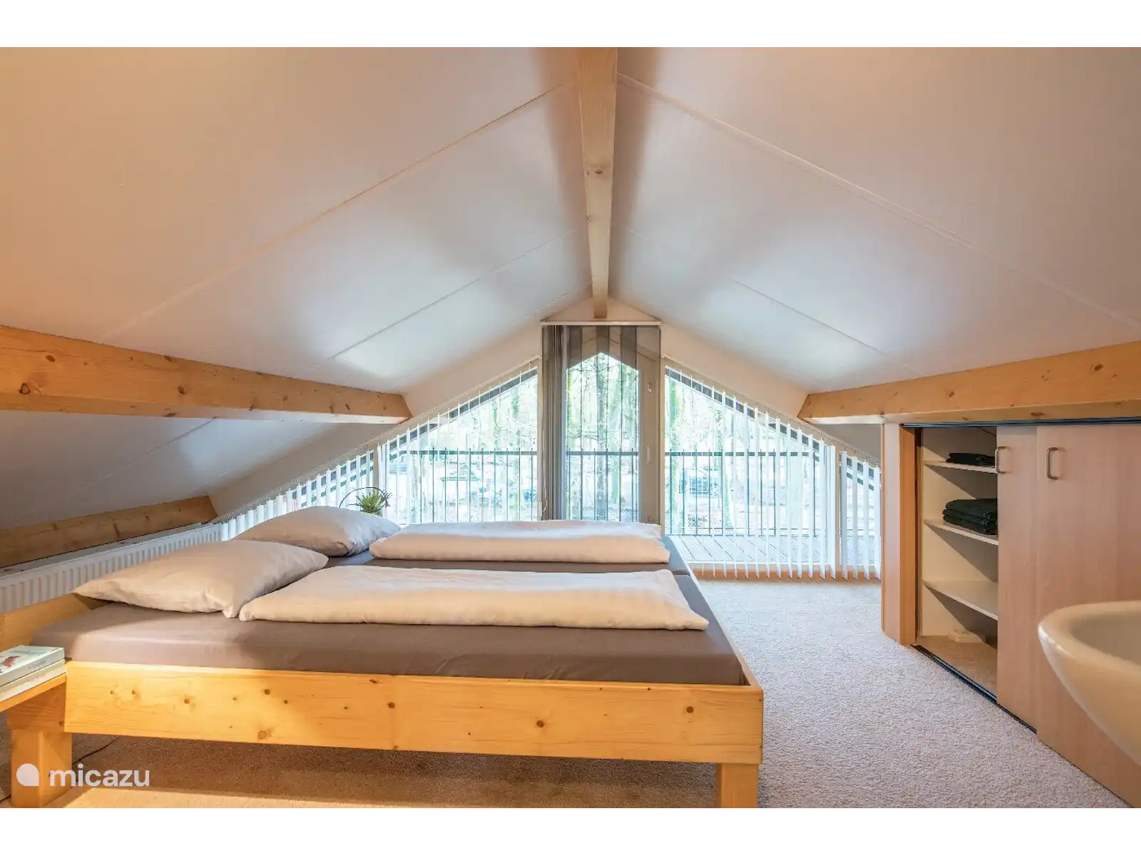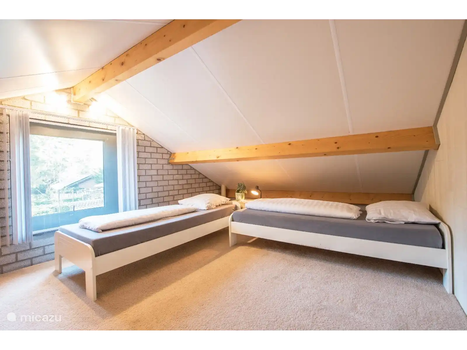 Dans la première chambre, vous trouverez un lit double spacieux avec deux matelas de 80 x 200 cm, tandis que l'autre chambre dispose de deux lits simples confortables, chacun avec un matelas de 90 x 200 cm. Ce charmant bungalow de coin mitoyen est équipé de toutes les commodités modernes dont vous avez besoin pour un séjour sans soucis.