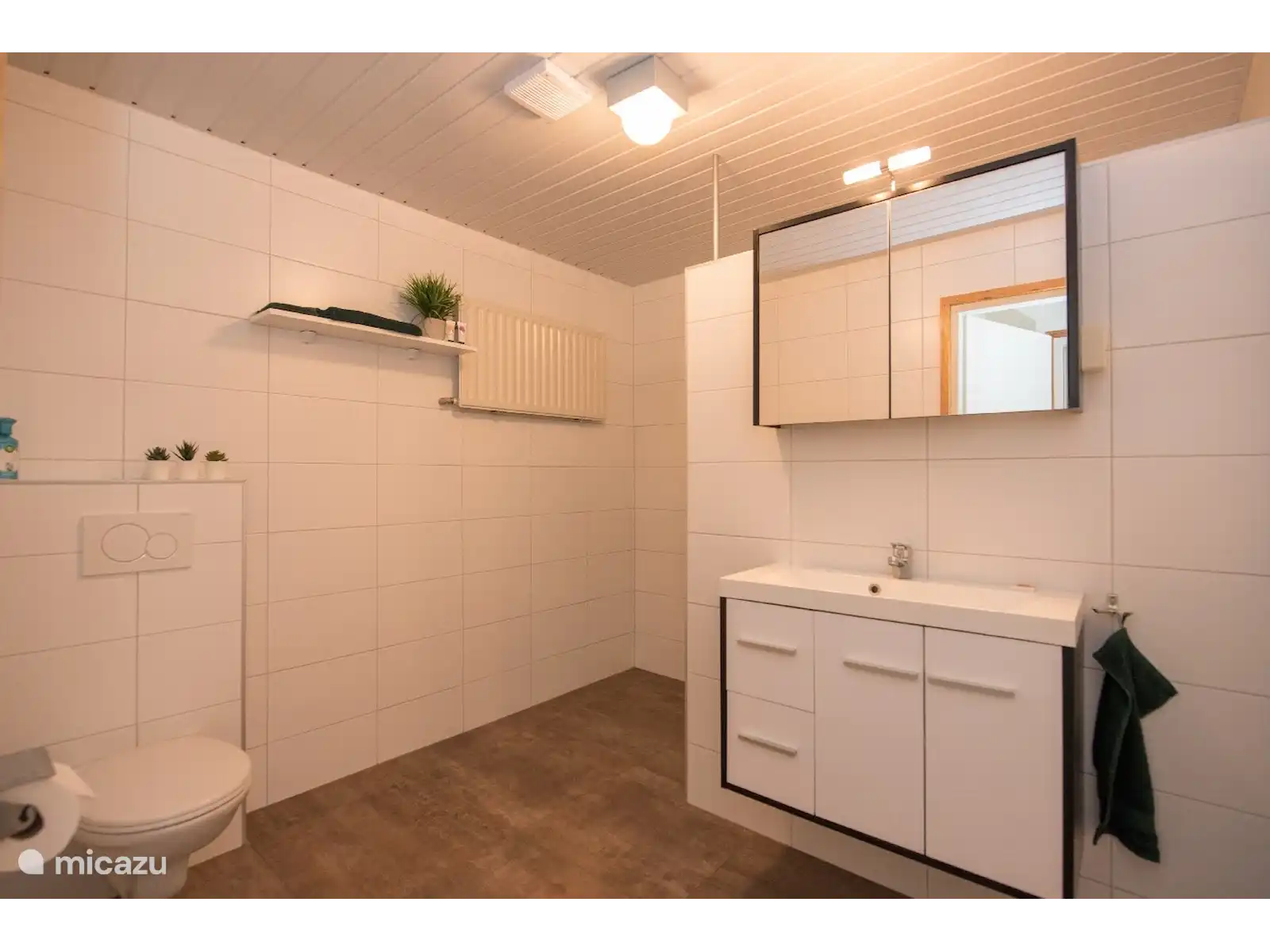 Profitez de la commodité d’une salle d’eau spacieuse, dotée d’un lavabo, de toilettes et d’une douche à l’italienne. À l'extérieur, un jardin idyllique avec une terrasse privée vous attend, parfait pour des moments de détente en plein air. Et pour les plus aventureux, il y a même un débarras pratique avec une prise pour recharger votre vélo électrique. Découvrez le confort et l'intimité du Bungalow Zilverfazant, où chaque détail a été conçu pour votre confort.