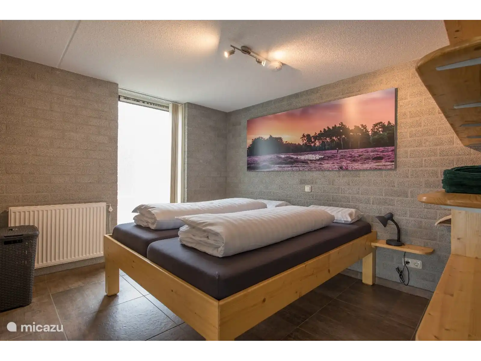 Bienvenue au Bungalow Bruine Walibi, un charmant hébergement pour quatre personnes avec un agencement unique et tout le confort que vous pourriez souhaiter ! Ce bungalow chaleureux offre trois chambres douillettes, une au rez-de-chaussée avec un lit double confortable avec deux matelas de 80 sur 200 cm, et les deux autres chambres au premier étage, chacune avec un lit simple avec un matelas de 90 sur 200 cm. .et un lavabo privé pour plus de commodité.