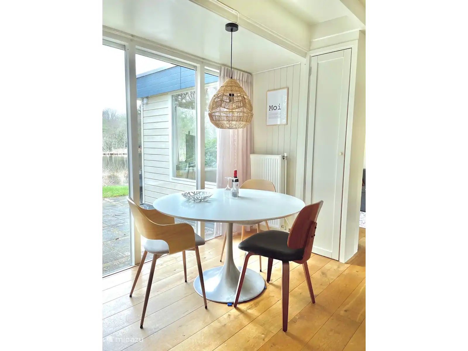 Ce chalet est situé directement sur une tourbière forestière, au milieu des bois de Drenthe entre Roden et Norg. De la route, vous pouvez à peine voir la maison. Lorsque vous conduisez dans l’allée et que vous marchez jusqu’à la terrasse, vous avez vraiment une vue phénoménale. À travers les nombreuses fenêtres, vous regardez l’eau de tous les endroits du bungalow. Ici, la paix n’est troublée que par le gazouillis des oiseaux et le coassement des grenouilles.