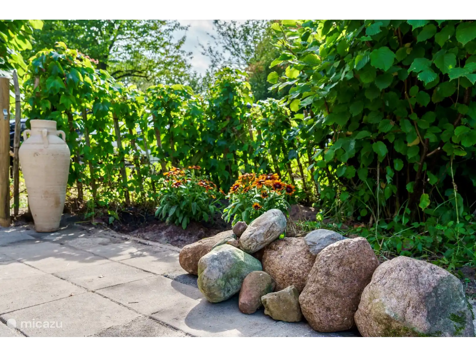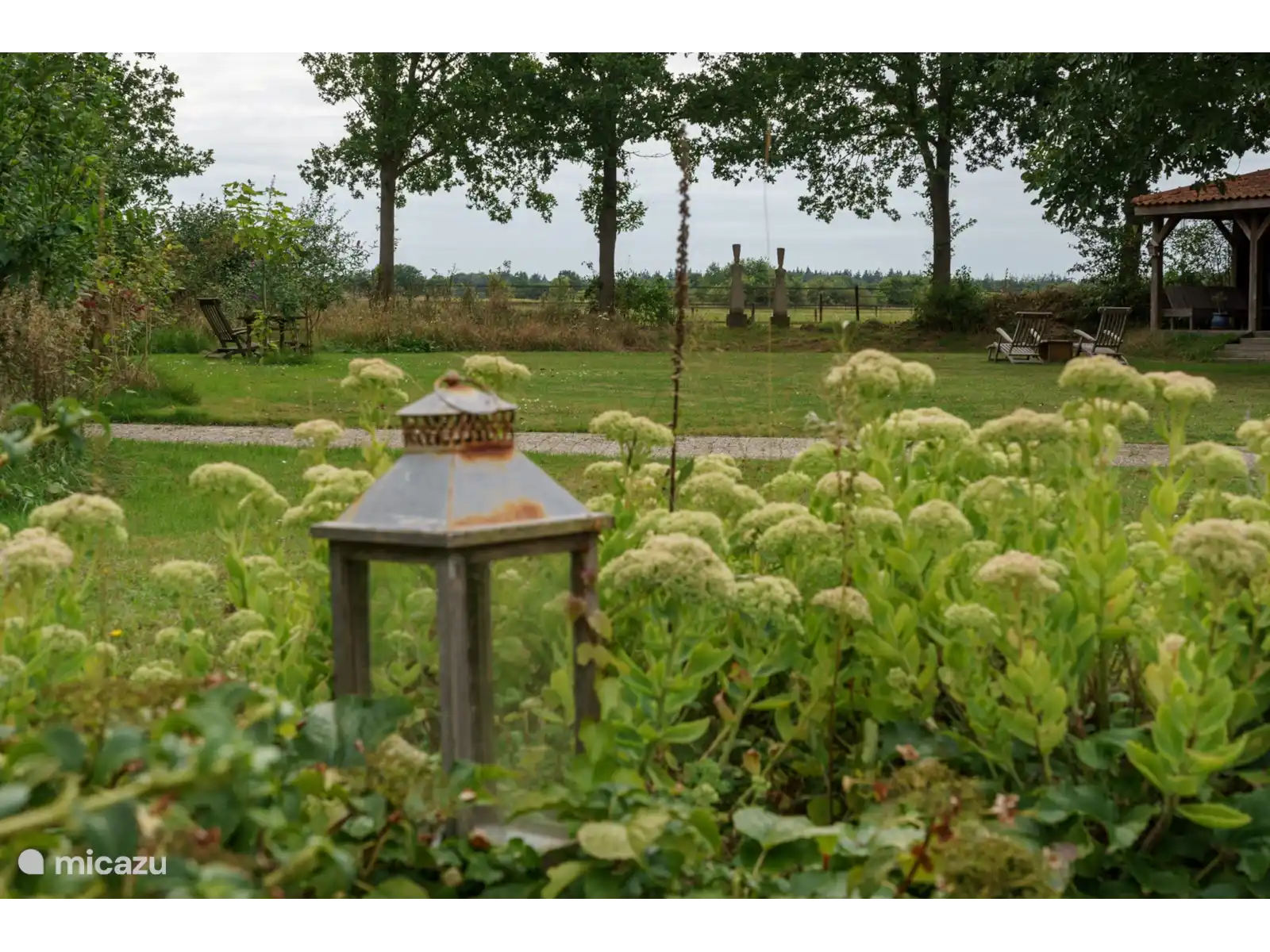 Le grand jardin est composé de plusieurs parties : un ancien verger, un potager et « le jardin secret » ; Un endroit merveilleux pour s’imaginer seul au monde. Des pelouses partout entourées d’arbres, d’arbustes et de plantes et une vue infinie vers la lande du Molenveld. Dans le jardin, nous avons plusieurs coins salon où vous pouvez lire un livre ou simplement regarder les magnifiques environs.