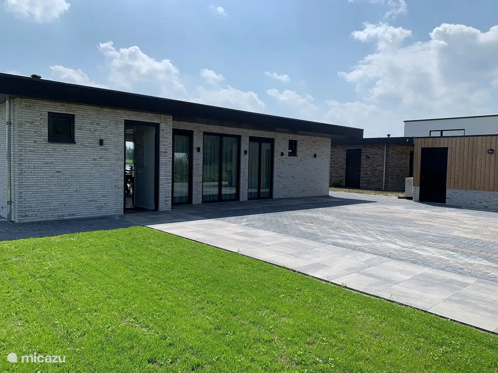 Le salon avec grande table à manger donne sur le lac de loisirs. La cuisine de luxe est équipée d’un induction, d’un grand réfrigérateur, de tiroirs de congélation et d’un lave-vaisselle. Sur le joli canapé et les chaises, vous pouvez lire ou regarder la télévision / diffuser.
