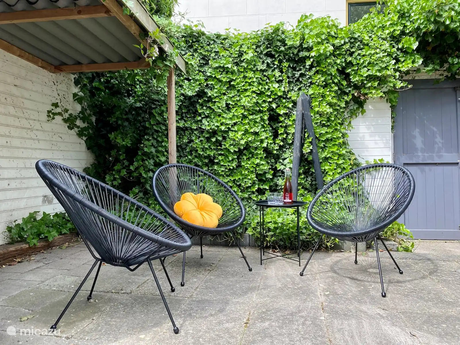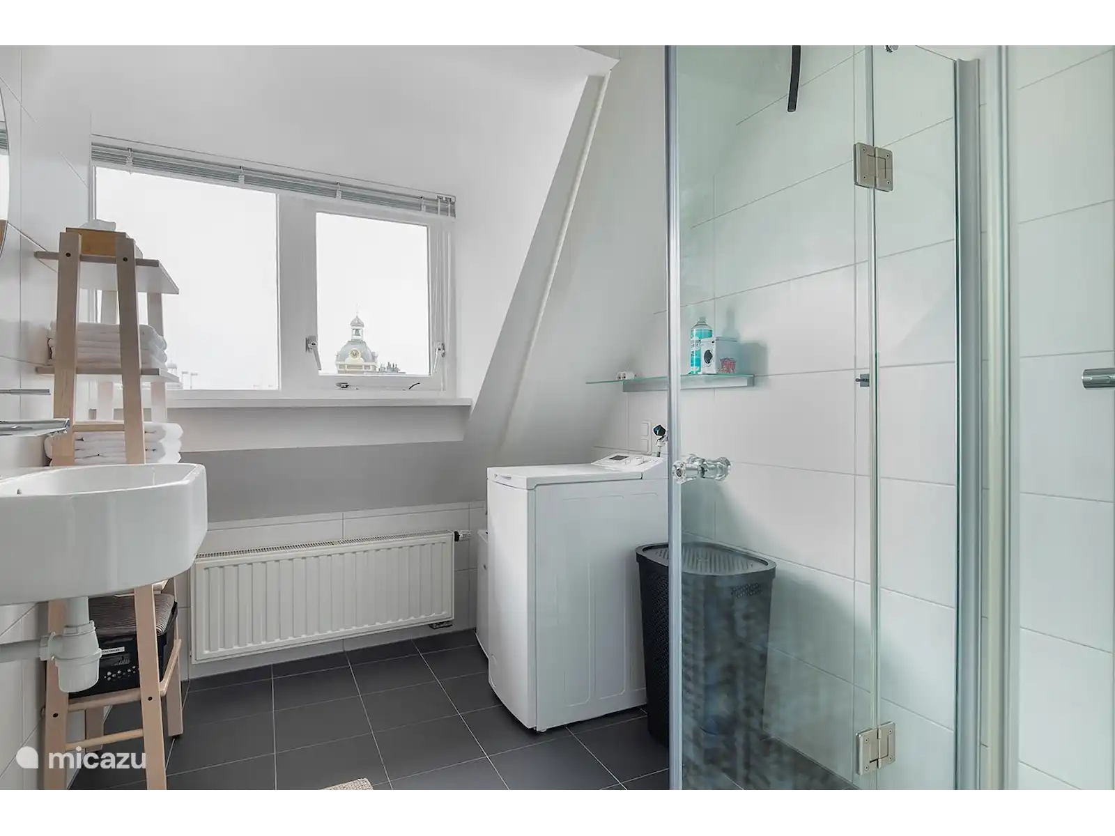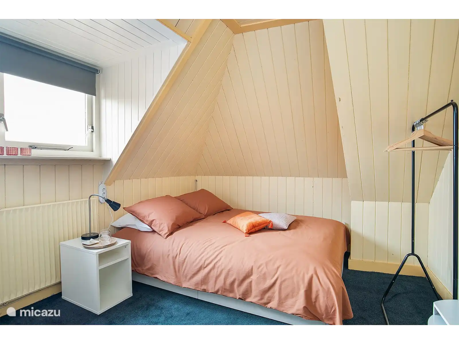 Un très bel endroit d'ailleurs : la maison de vacances se trouve au premier et au deuxième étage, d'où vous pourrez contempler - en toute intimité - depuis les coussins des larges rebords de fenêtre, vous vous détendrez dans un salon confortable (env. 40 m2 ) avec cuisine entièrement équipée. Tout est là pour cuisiner copieusement, prendre le petit déjeuner, boire un verre, se régaler... Bien sûr il y a aussi une smart TV et le WiFi. Au même étage se trouve également la grande chambre principale (environ 28 m2) avec un luxueux lit king-size avec matelas à ressorts. Au dernier étage se trouve la salle de bain bien entretenue (env. 6 m2) avec un lavabo et une cabine de douche, une machine à laver et un petit congélateur. Il y a aussi la 2ème chambre (env. 10 m2) avec un petit lit double et un lit simple. Derrière le bâtiment est peut-être. autre possibilité de ranger les vélos.