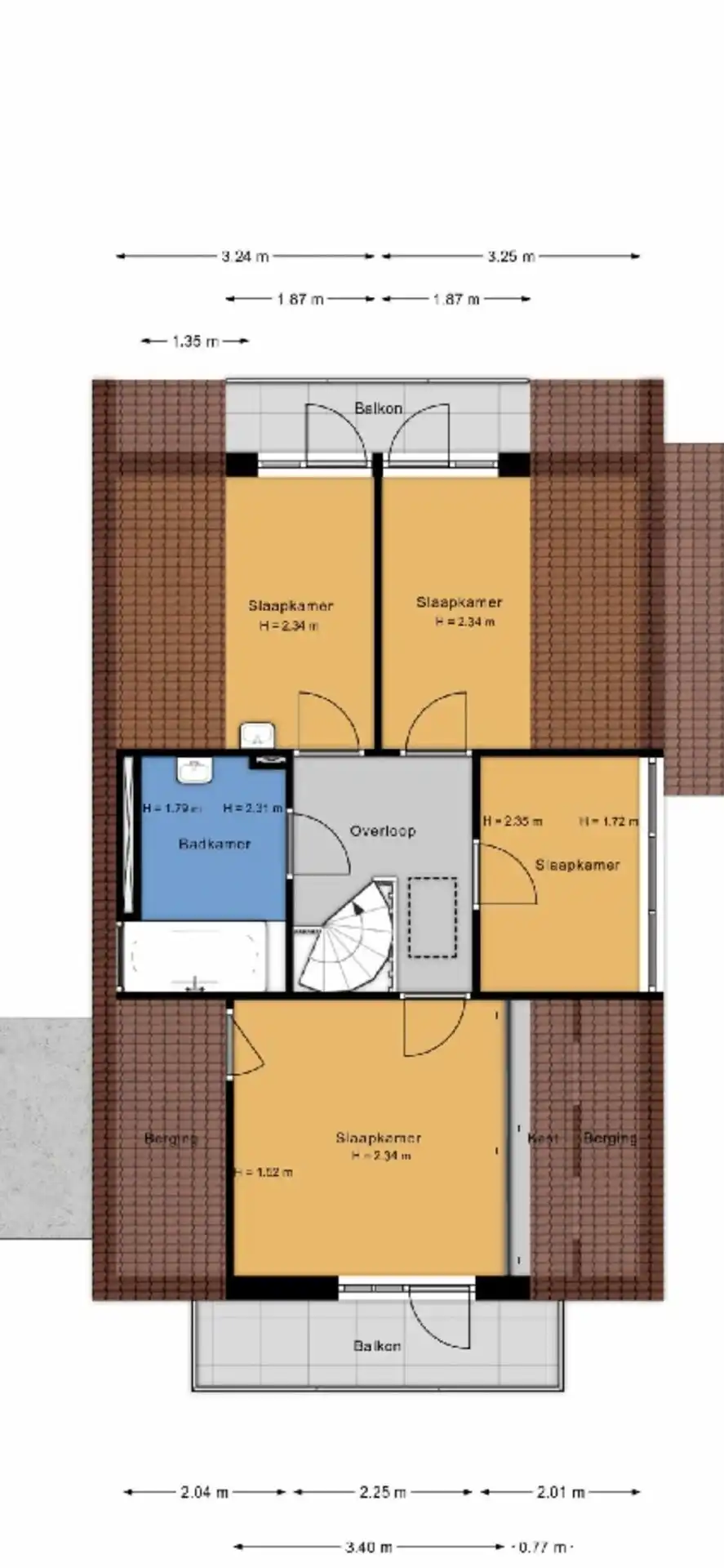 A l’étage, il y a 4 chambres et une toute nouvelle salle de bain avec douche. Dans 3 des chambres, il y a 2 lits à sommier tapissier qui peuvent être assemblés ou utilisés séparément. La plus petite chambre dispose d’un lit superposé, pouvant aller jusqu’à 1,90 m. Un lit de camp est disponible.