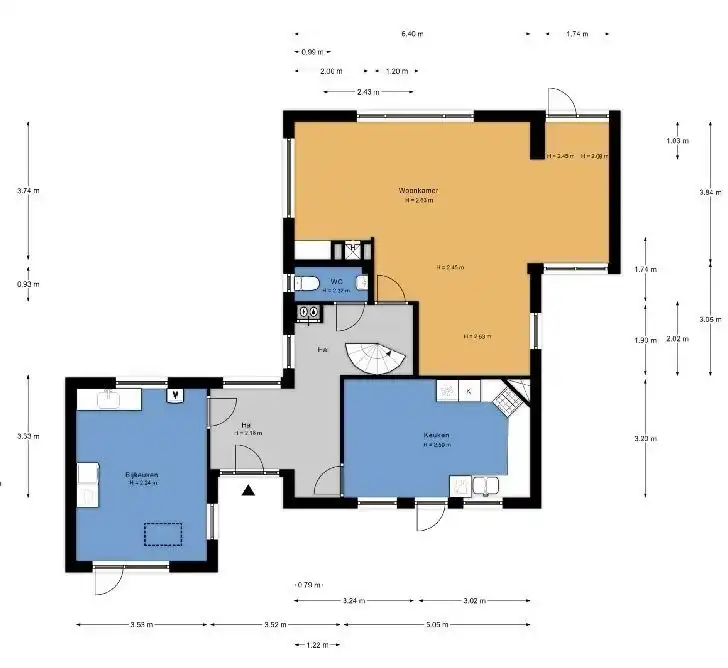 La cuisine fermée et spacieuse est fermée du salon par le hall. La cuisine est bien équipée avec beaucoup de vaisselle et de couverts et a une porte à l’arrière de la maison avec un joli jardin. Dans le hall, il y a un accès aux nouvelles toilettes.