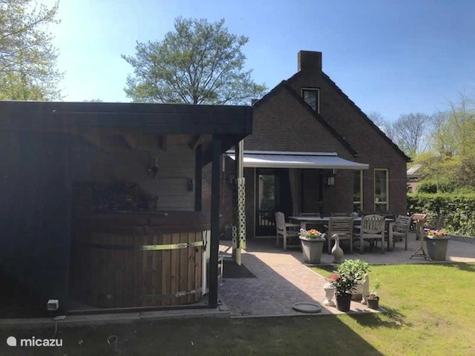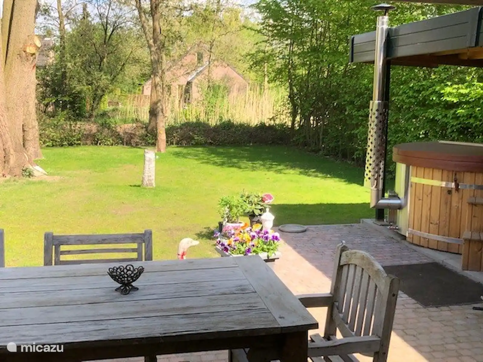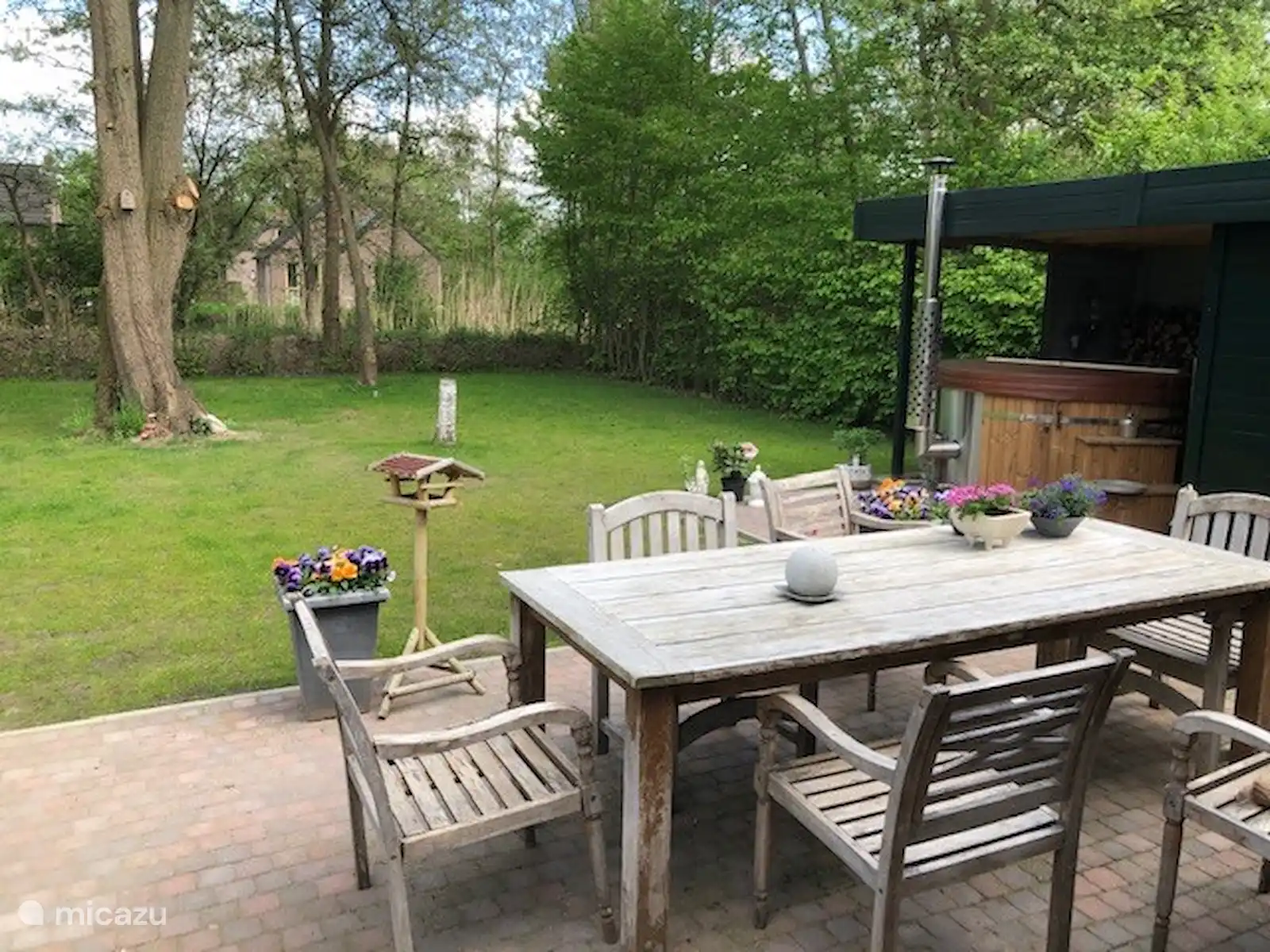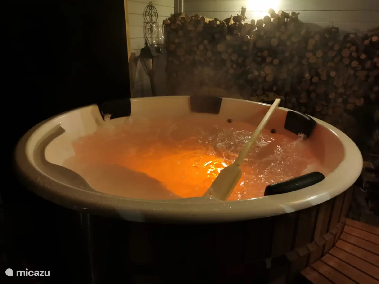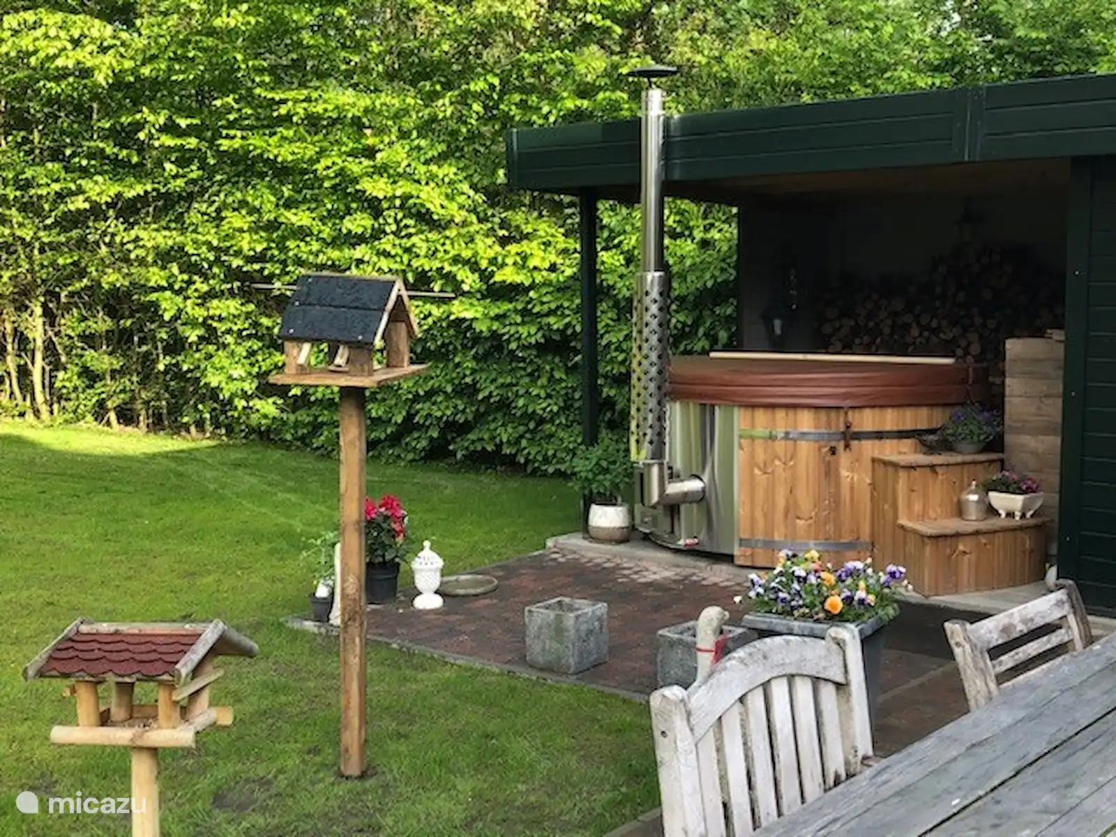 Dans le jardin se trouve un bain à remous intérieur au feu de bois pour 6 personnes. C'est prêt pour vous, le bois n'est pas inclus dans le prix. Pour la première fois, il y a du bois gratuit dans le poêle du spa. Vous pouvez acheter du bois dans les quincailleries de votre région. Nous pouvons également organiser cela pour vous sur demande et moyennant des frais.
