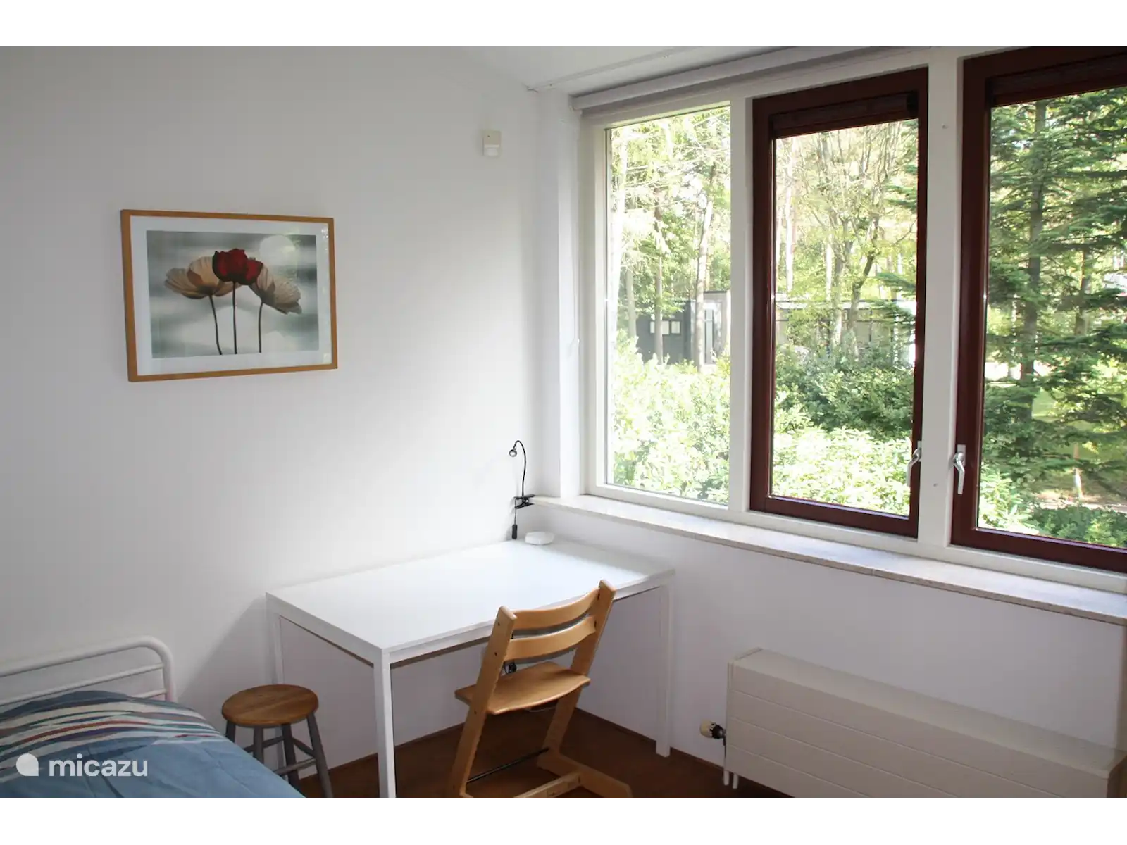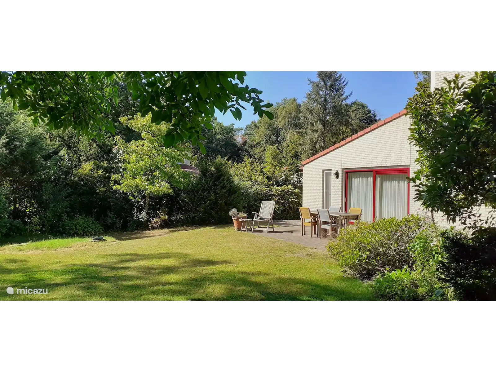 Par l’entrée du rez-de-chaussée, vous entrez d’abord dans le salon. De plus, il y a une petite 3èmechambre et une buanderie avec machine à laver à cet étage. La grande cuisine est située au sous-sol. La cuisine est entièrement équipée. Vous pourrez y cuisiner. Au 1erétage, il y a deux chambres ; 1 avec un lit simple et un espace de travail et une chambre avec un lit double. Au dernier étage (2ème) il n’y a pas moins de deux salles de bains. L’une avec douche et WC et l’autre avec douche et baignoire. En plus du chauffage central, il y a deux cheminées à gaz (salon et cuisine). Sur le parking, vous trouverez un hangar avec deux vélos que vous pouvez utiliser. Le jardin fait 1200m2. Les deux terrasses sont équipées d’un store à bras articulé. De plus, en été, il est bon de se détendre dans le hamac ou à table sous le noyer sur la grande pelouse.
