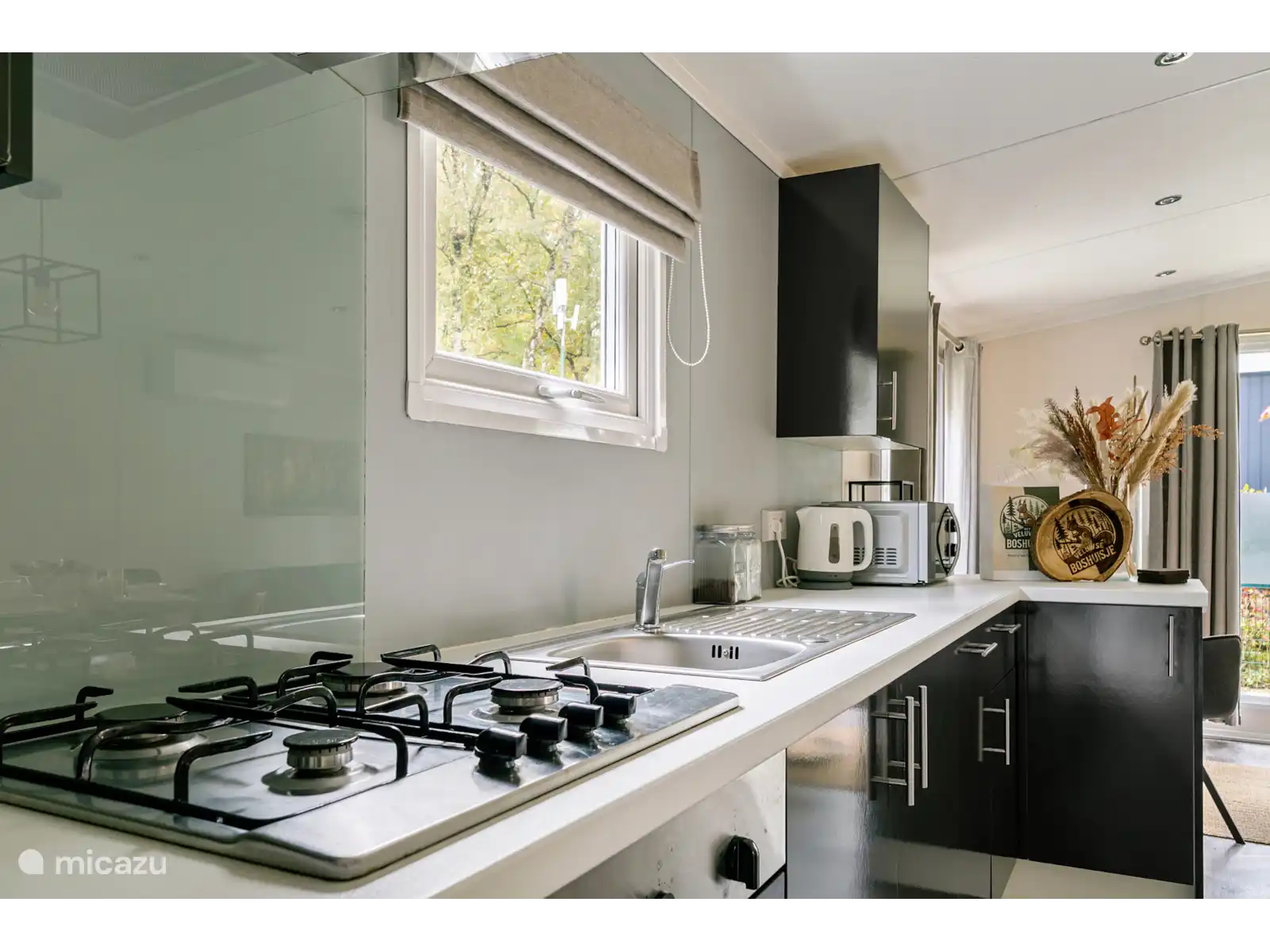 Cuisine entièrement équipée avec lave-vaisselle, four, micro-ondes, filtre et machine Dolce Gusto