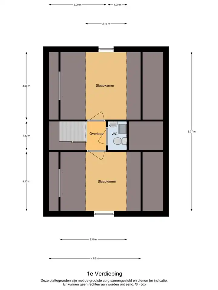 Les deux chambres confortables ont un sol stratifié et sont situées au premier étage. Il y a aussi un deuxième WC avec lavabo à l'étage.