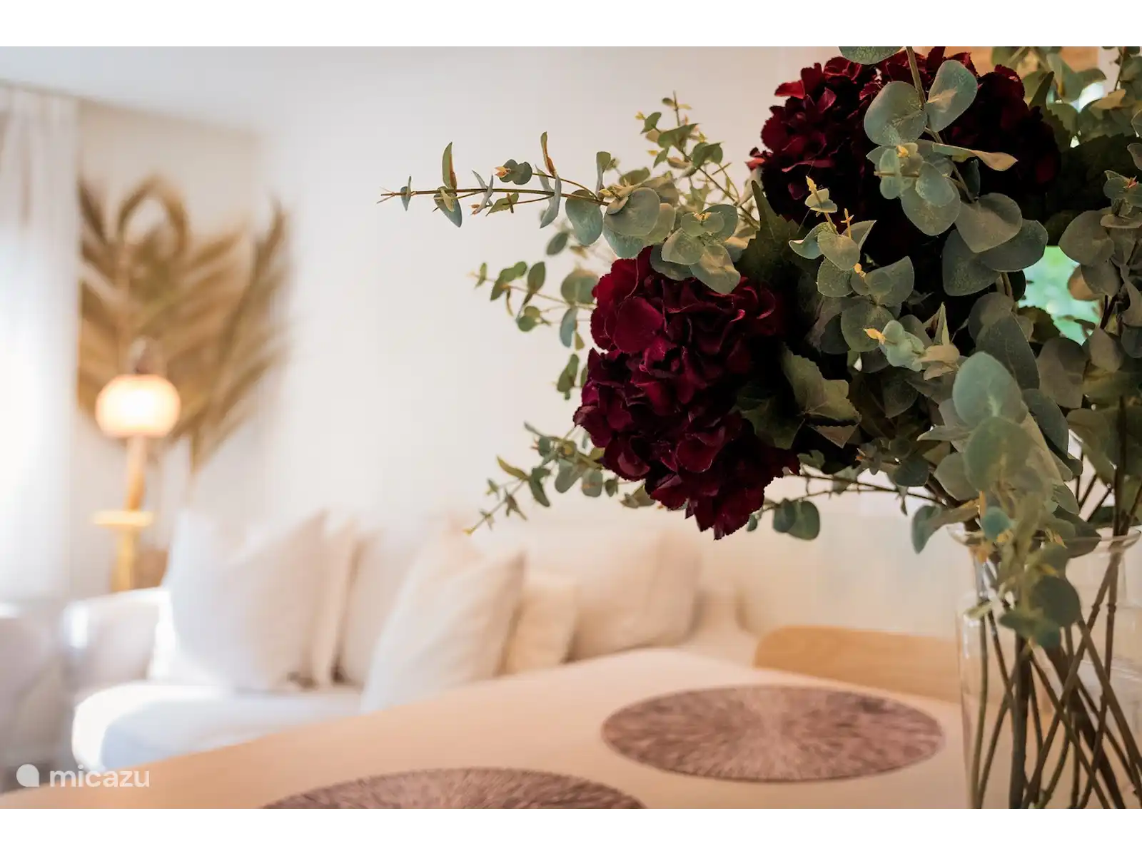 Séjour cosy avec cuisine ouverte bien équipée avec portes coulissantes donnant sur la terrasse, 2 chambres. Le Wi-Fi est inclus.