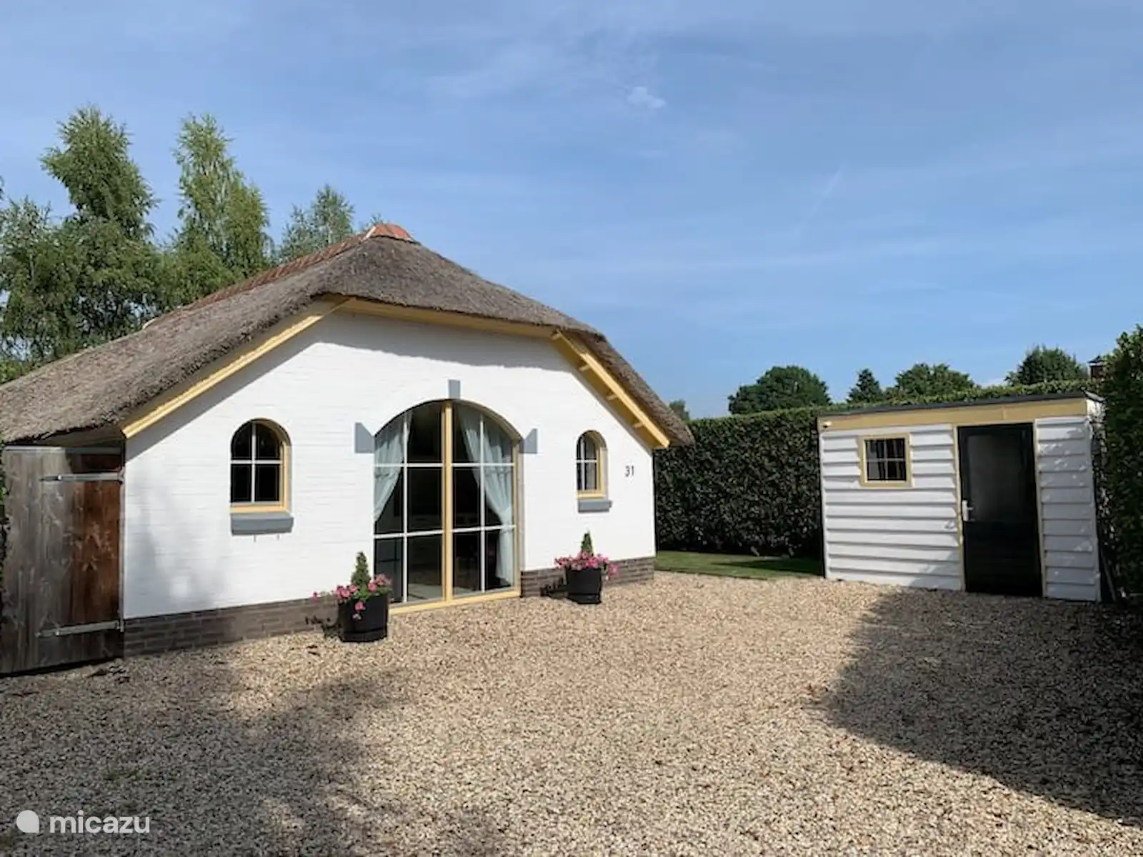 Le bungalow indépendant au toit de chaume de 66 m2 est situé sur un terrain privé de pas moins de 1000 m2 et est situé dans un parc de loisirs calme avec un total de 31 bungalows. Il y a une place de parking privée et gratuite. Le jardin a plusieurs bordures de plantes et offre plusieurs coins salon.