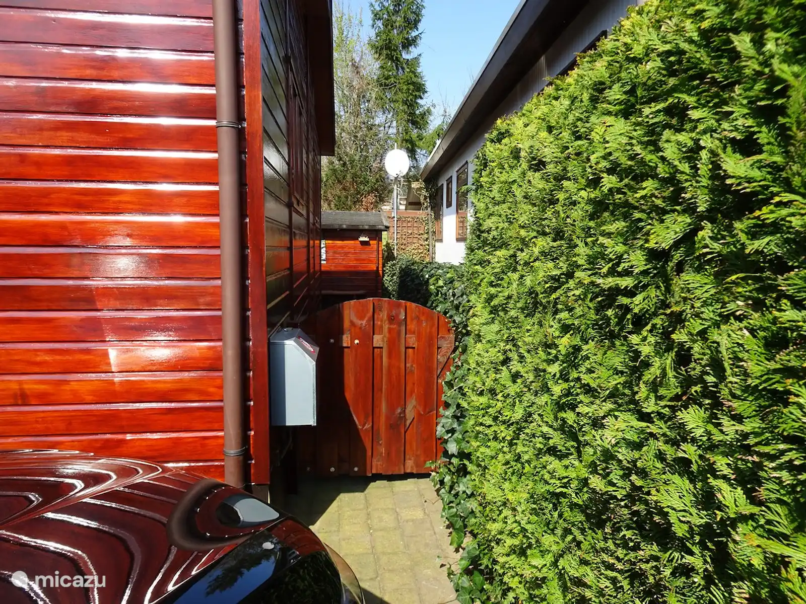 Notre chalet est situé sur un terrain très ensoleillé et est protégé presque partout par de hauts arbustes et des clôtures, assurant ainsi l'intimité.
