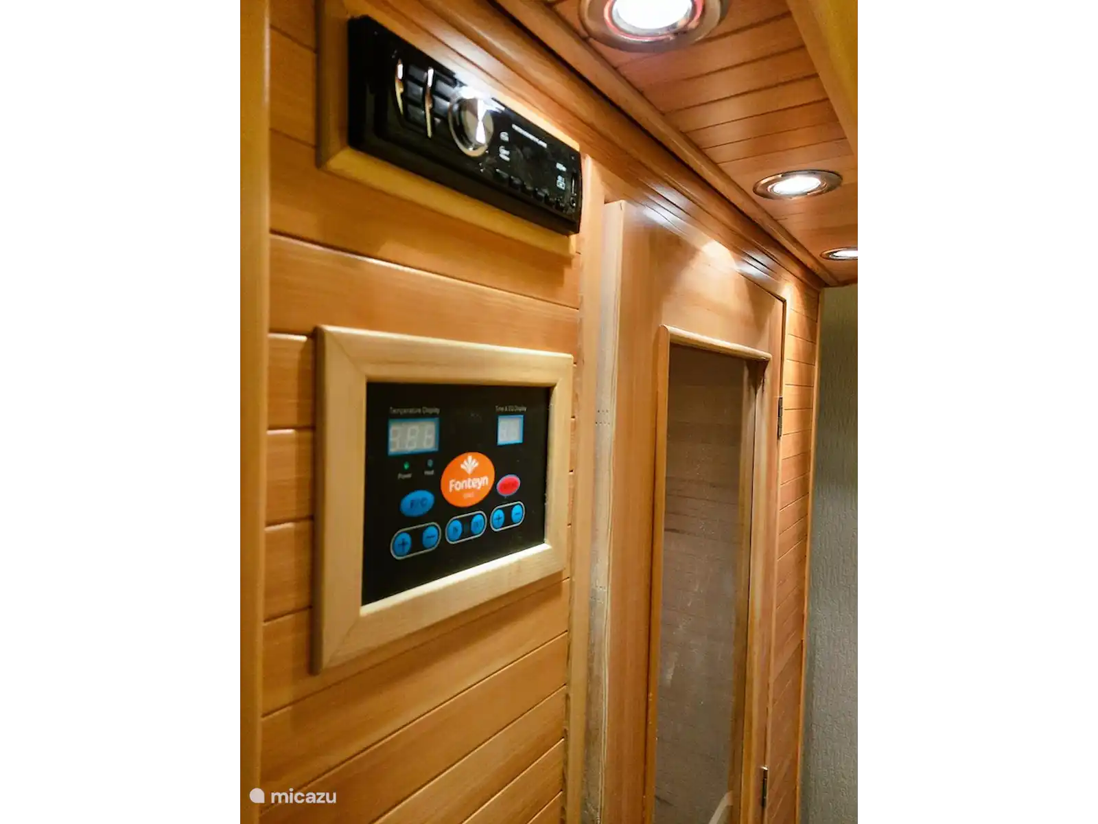 Cerise sur le gâteau, vous trouverez un magnifique sauna infrarouge dans le Veluwe Flow. Idéal pour se détendre après une journée active dans la Veluwe. Et la radio fournit une belle musique de fond si vous le souhaitez.