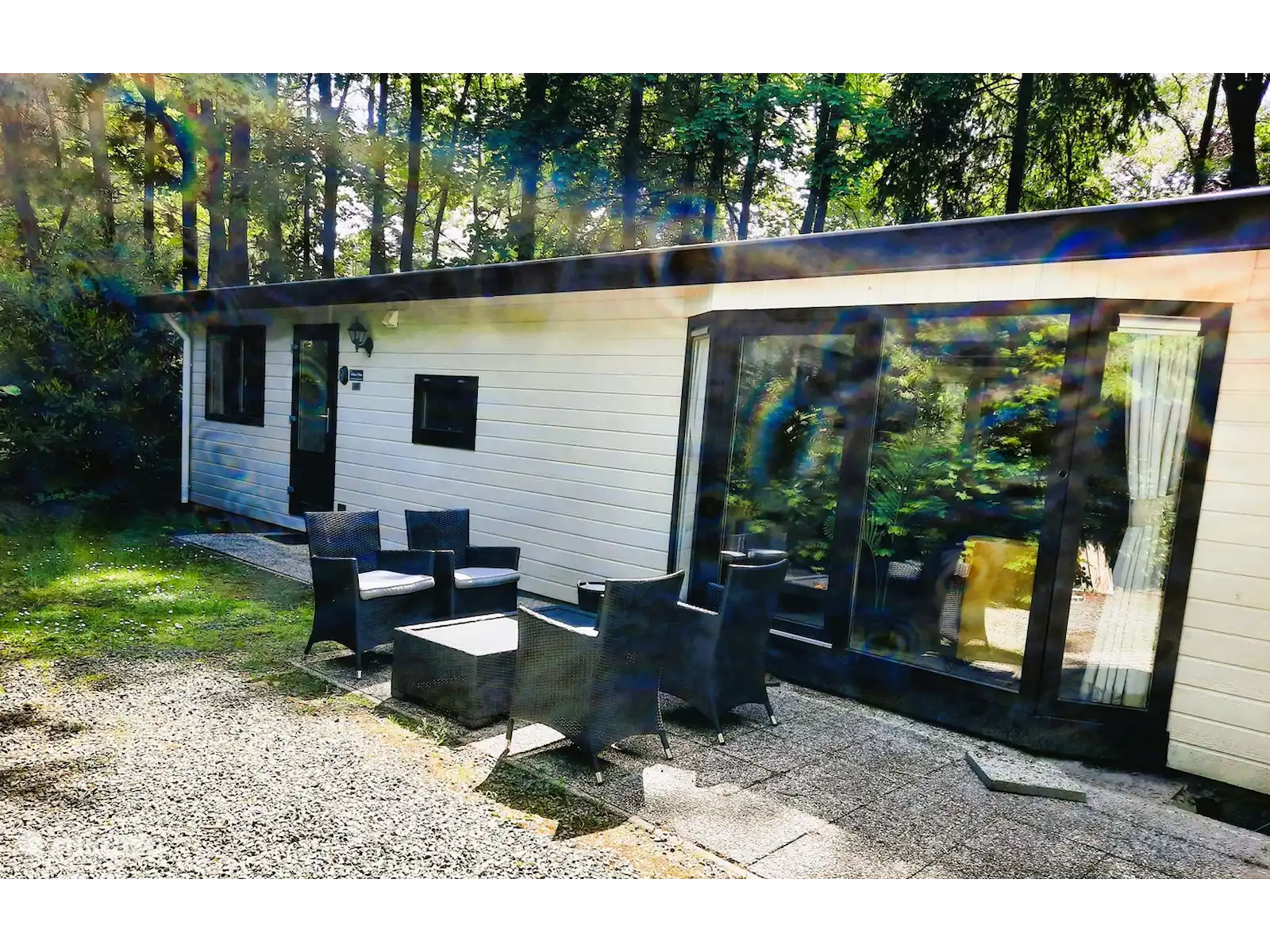 Le Veluwe Flow est situé dans un parc de loisirs où règne une atmosphère détendue et conviviale. Le logement est situé dans un endroit calme au bout d’un chemin où personne ne passe. Le terrain est très grand, vous pouvez donc choisir où vous asseoir. Il y a plusieurs coins salon et il y a un grand parasol. Dans le hangar, il y a deux vélos que vous pouvez bien sûr utiliser. Avec la demande amicale de les laisser avec des pneus pleins pour nos prochains invités. Vous pouvez également louer des vélos (électriques) au parc. Il se trouve à proximité de l’aire de jeux et du bar/réception Het Boshuys, où vous pourrez rencontrer d’autres clients et où des activités d’animation sont régulièrement organisées. À l’entrée du parc se trouve une confortable crêperie, où vous pouvez également aller pour autre chose qu’une crêpe.