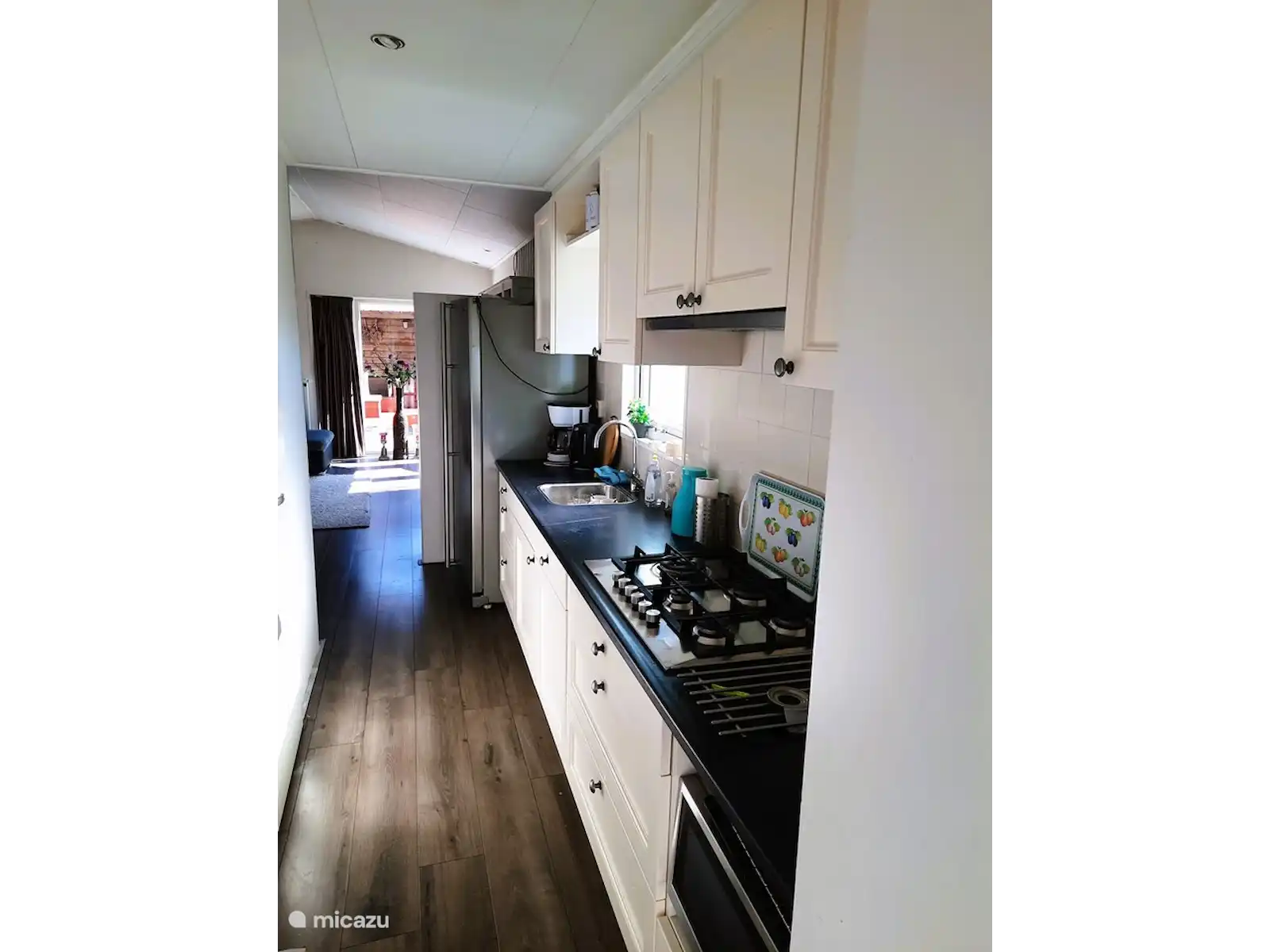 Vous dormez dans une chambre fraîche avec beaucoup d’espace de rangement et des lits avec des têtes et des pieds réglables électriquement. La salle de bain est spacieuse et dispose d’un meuble sous-vasque avec deux robinets, d’une baignoire à jets dans laquelle vous pouvez également vous doucher et de toilettes. Il y a aussi un débarras avec une machine à laver.