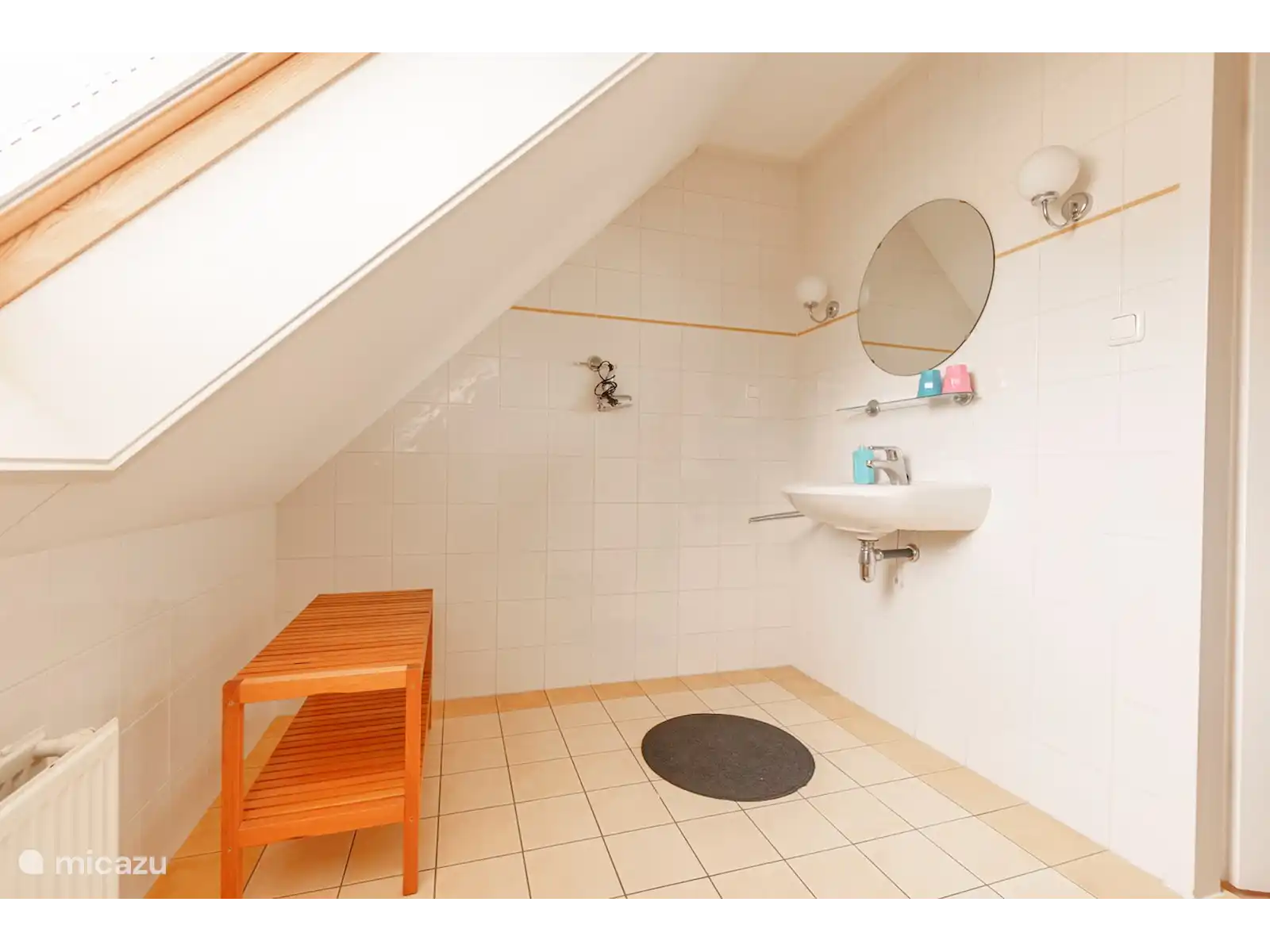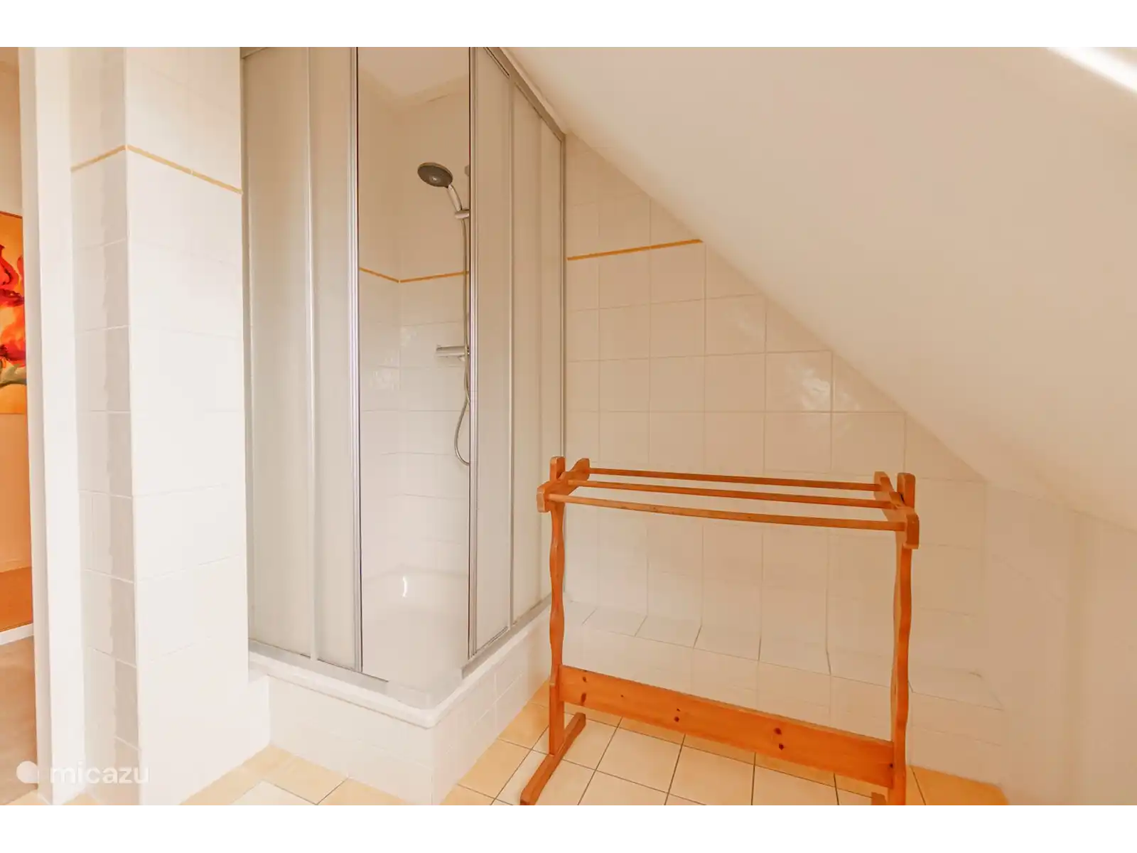 Vous entrez dans la maison de vacances par le hall spacieux avec son propre escalier menant à votre appartement au premier étage. 2 chambres très spacieuses pour 2 personnes chacune.