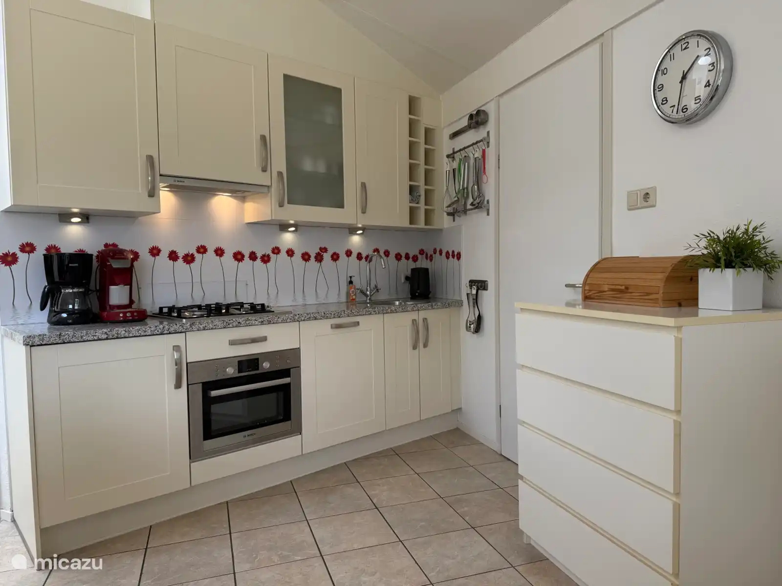 Ce bungalow confortable dispose d'un jardin ensoleillé avec une terrasse et d'un parking privé gratuit. Il est au rez-de-chaussée et dispose d'une cuisine ouverte et d'un salon avec des portes coulissantes donnant sur le jardin. La cuisine est équipée d'un lave-vaisselle, four encastré, grille-pain, Senseo et cafetière, bouilloire, réfrigérateur et plaque de cuisson au gaz. La salle de bain a une douche avec douche pluie, un lavabo et des toilettes et il y a un 2ème WC séparé. Les 3 chambres ont 1 x lit double, 1 x 1 lit simple et une chambre avec 2 lits simples. Les plus petits ont également été pensés, il y a un lit bébé, une chaise haute et une baignoire bébé.