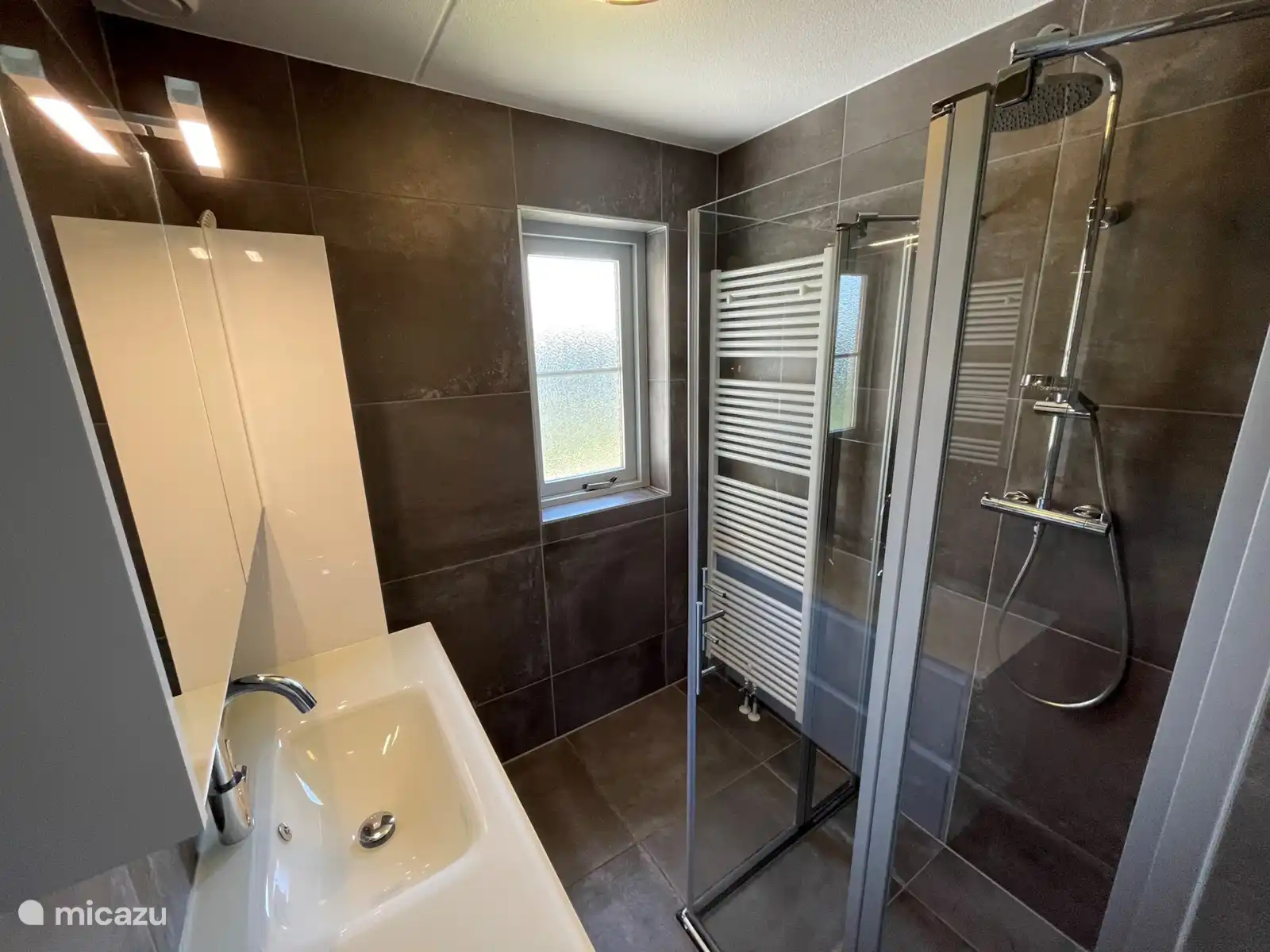 Au rez-de-chaussée se trouve la 3ème chambre avec 1 lit superposé. Il y a aussi un lit bébé et une chaise haute. La salle de bain au rez-de-chaussée dispose d’une douche et d’un lavabo et il y a des toilettes séparées . Il y a une machine à laver dans le débarras. La maison dispose également d’une connexion Internet et vous pouvez utiliser le WI-FI gratuit.