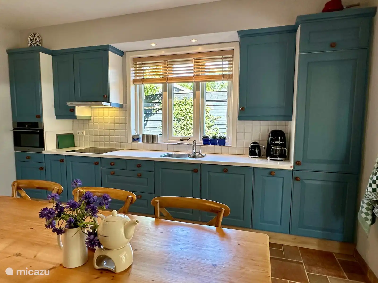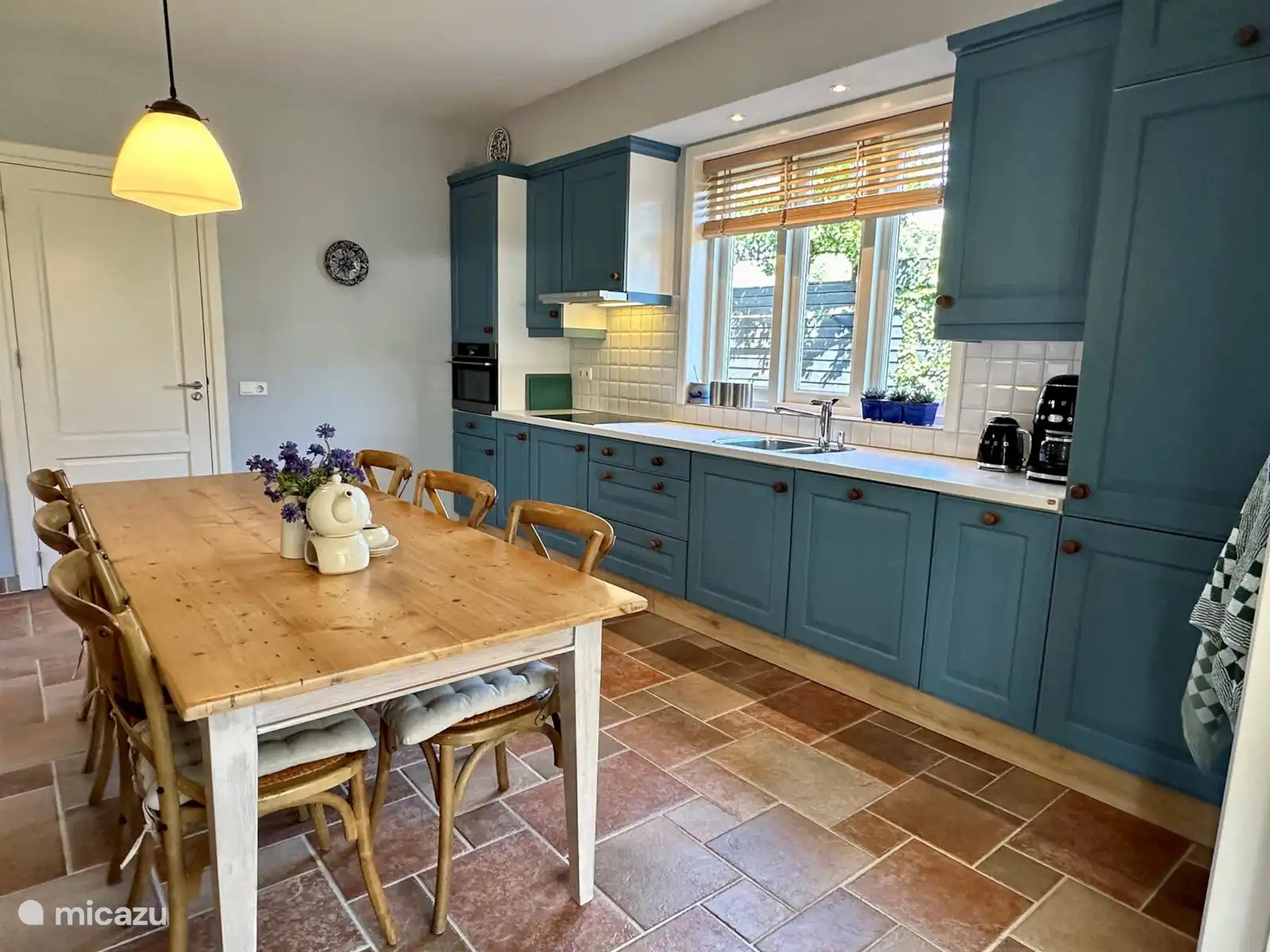 La cuisine est entièrement équipée (avec lave-vaisselle, four, etc.) et dispose d’une grande table à manger où vous pouvez dîner.