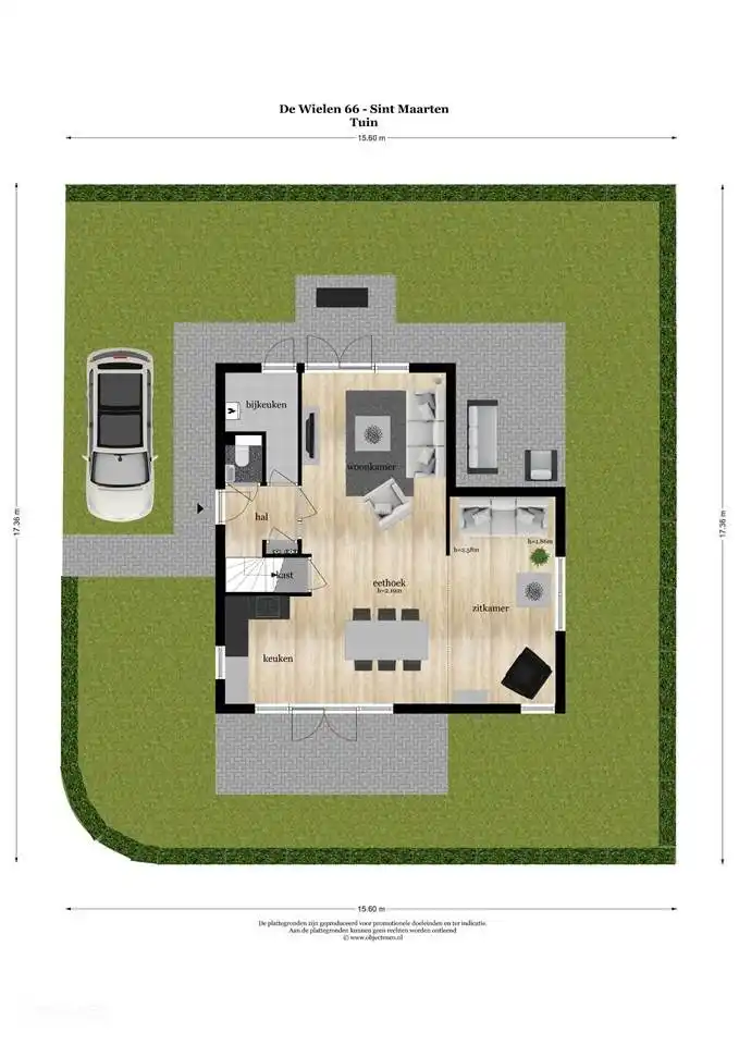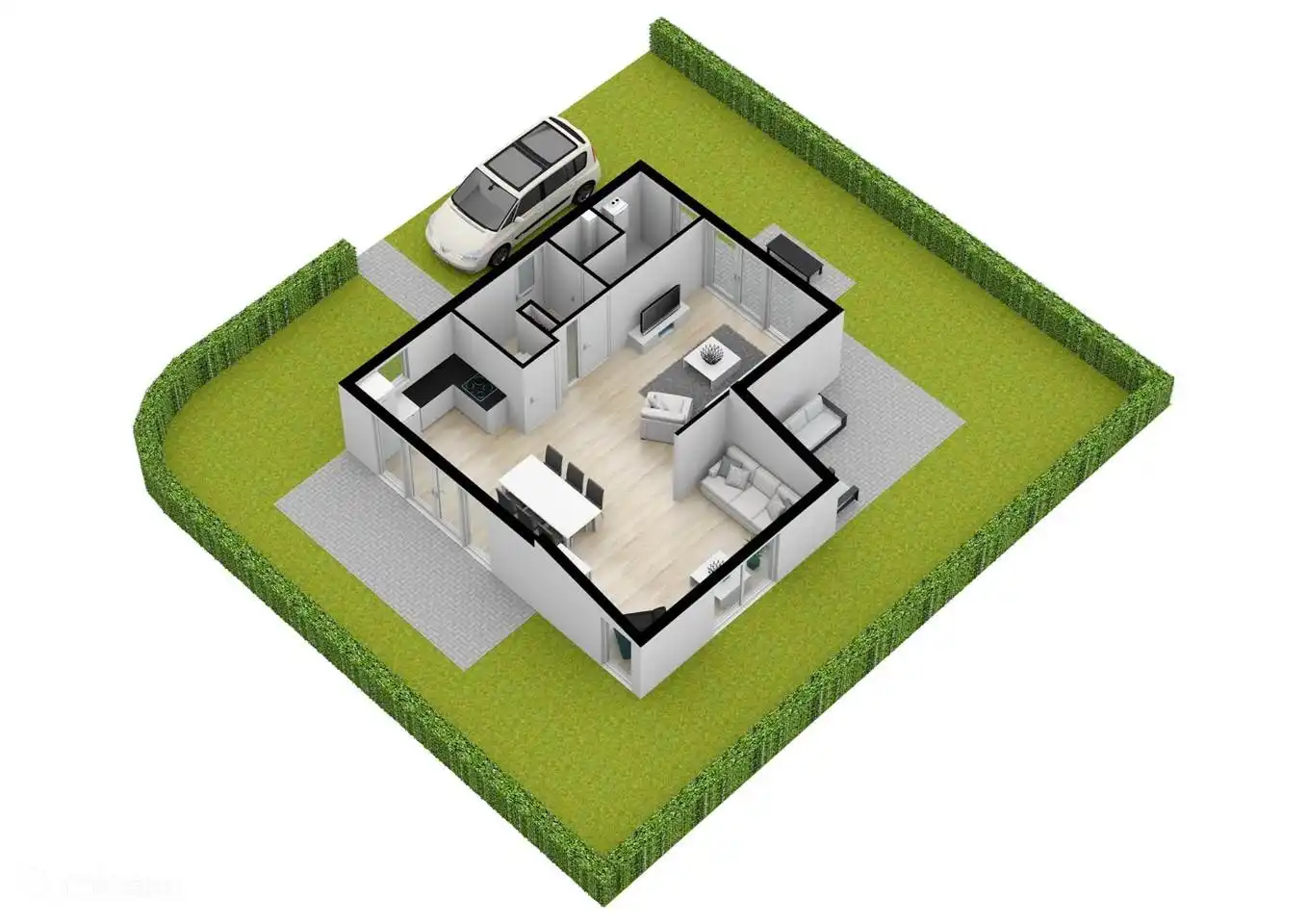 La place de parking se trouve à côté de la maison. Avec une terrasse à l’avant et à l’arrière.