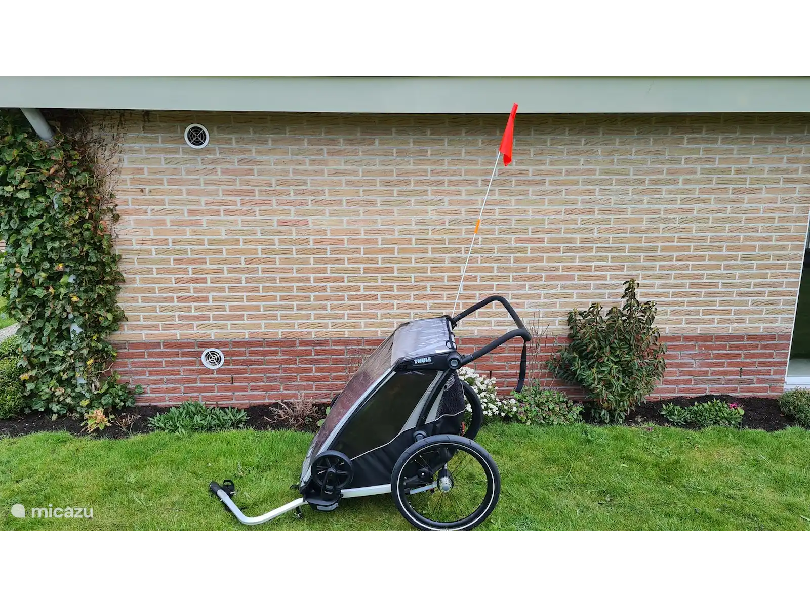 Explorez la région à bord de nos vélos de luxe de haute qualité de Gazelle et d’une poussette Thule pour 2 petits enfants.
