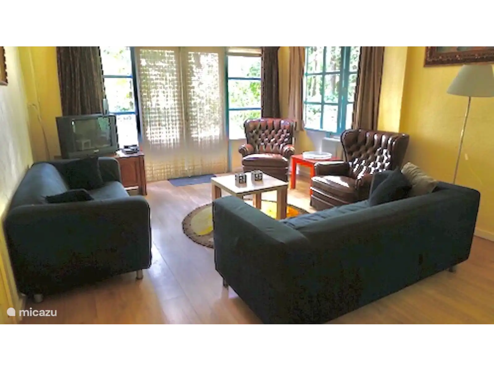 Séjour de 10 mètres de long, cuisine ouverte, portes-fenêtres donnant sur le jardin. Avec lecteur DVD et télévision. Salle de bain spacieuse avec machine à laver. Cuisine avec réfrigérateur, lave-vaisselle, four, feux gaz, senseo, bouilloire et vaisselle. Il faut traverser une chambre pour accéder à l'autre chambre. Tous avec chauffage central. Apportez votre propre linge. Les couettes et les oreillers sont fournis.