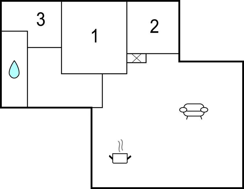 - débarras / 3ème chambre avec penderie, étendoir à linge, congélateur, branchement machine à laver, chambre pouvant accueillir un lit de camp