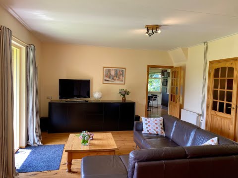 Le vaste salon douillet dispose d’un coin salon avec un câble numérique (TV HD 40 pouces/100cm) et une radio, un lecteur CD et DVD ainsi qu’une bibliothèque avec divers livres et jeux. Dans le coin le plus éloigné du salon en forme de L se trouve un lit double que l’on peut séparer du reste de la pièce par un rideau.