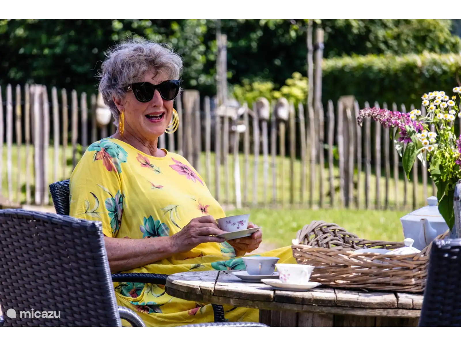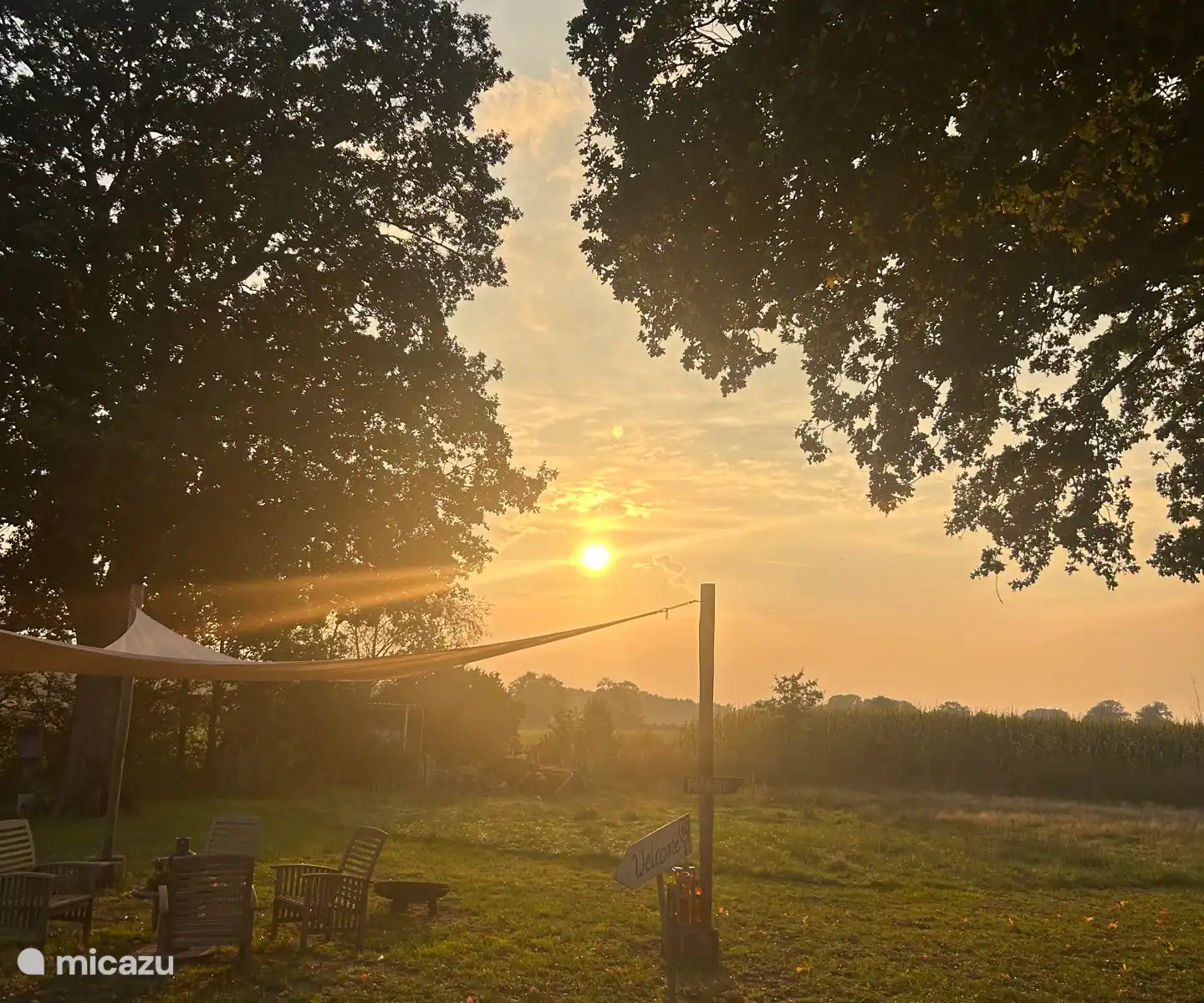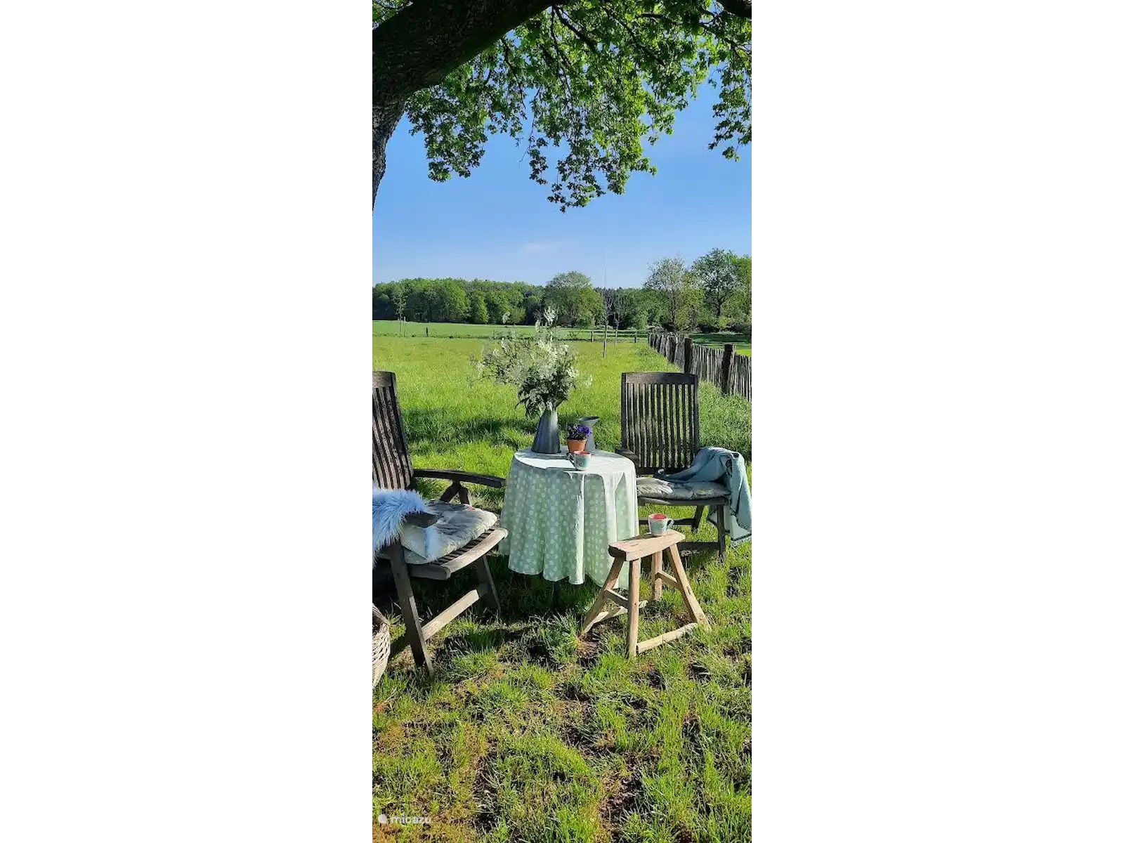 La terrasse donne sur les prés, la limite terrestre et l'allée du chemin de charrette. Des meubles de jardin sont disponibles. Vous pourrez profiter du soleil du soir autour d'un feu de camp et de la nature qui vous entoure. Il y a
