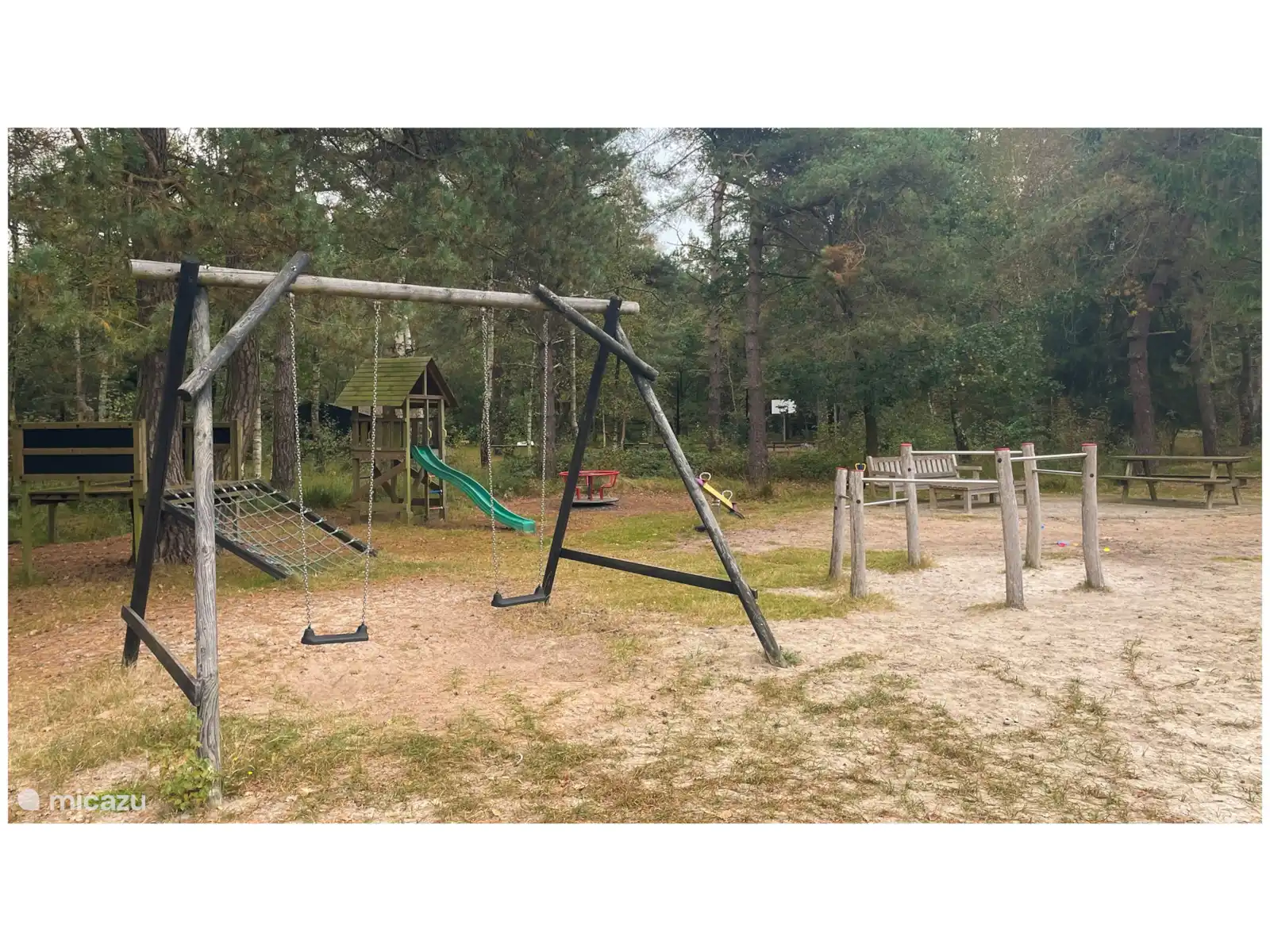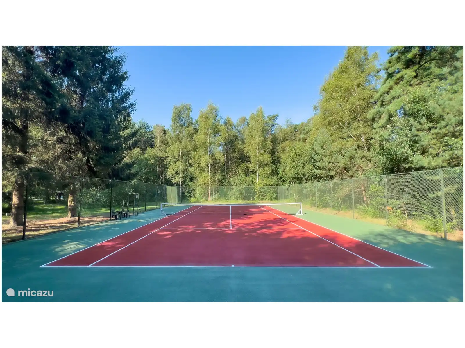 Le parc offre de nombreuses installations, dont une piscine extérieure chauffée (mai-septembre) comprenant des bassins pour les enfants, une aire de jeux, des courts de tennis, un terrain de football et un terrain de pétanque. Il y a aussi une petite bibliothèque avec des livres et plus de jeux, ainsi qu’une laverie avec machine à laver et sèche-linge.